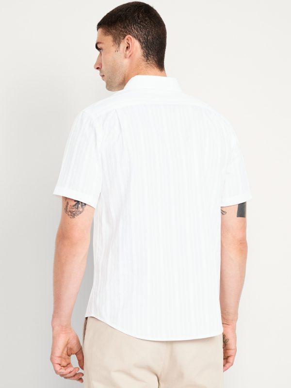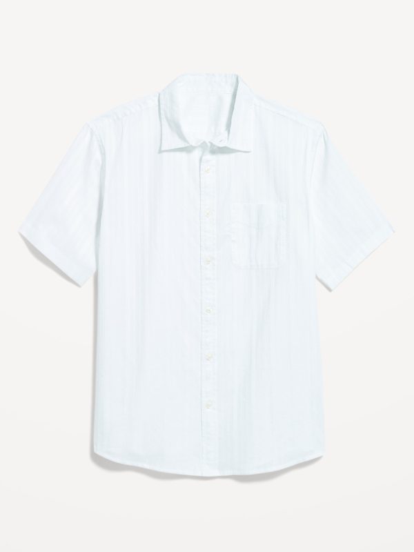 Classic Fit Everday Dobby Shirt: spread collar, short sleeves, full-button front, patch chest pocket, prints vary, #807396