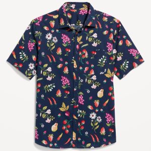 Classic Fit Everday Dobby Shirt: spread collar, short sleeves, full-button front, patch chest pocket, prints vary, #807396