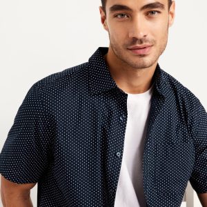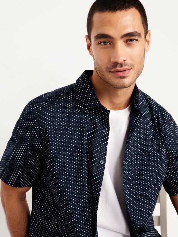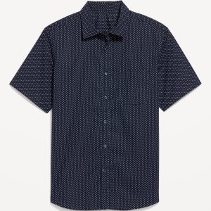 Classic Fit Everday Shirt: spread collar, short sleeves, full-button front, patch chest pocket, prints vary, #807396
