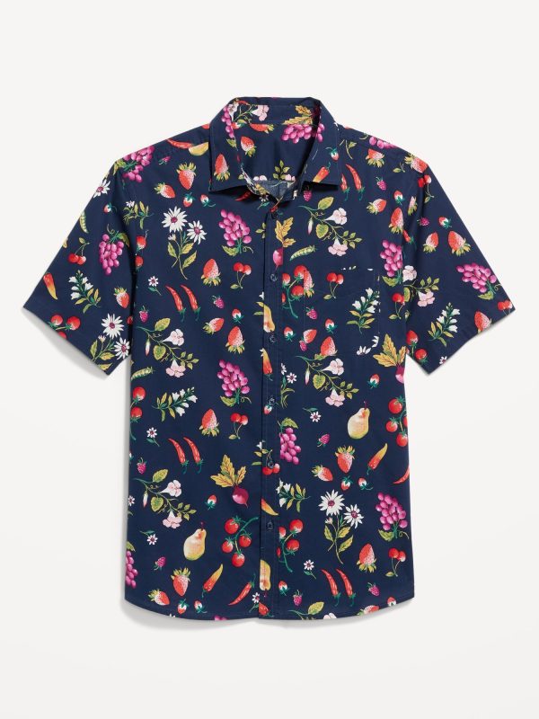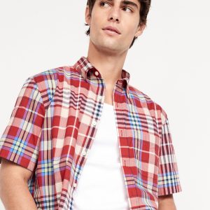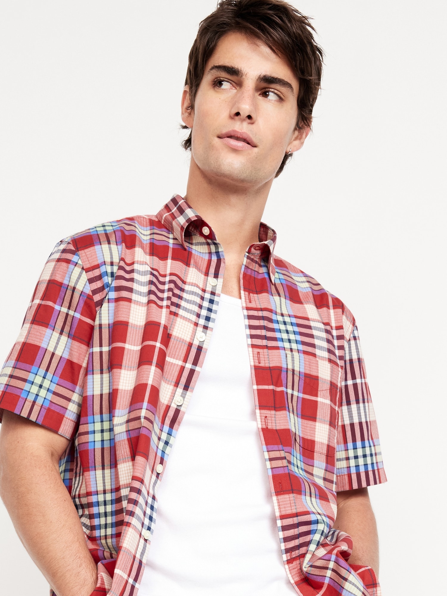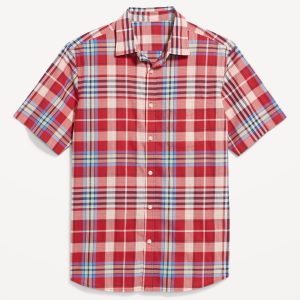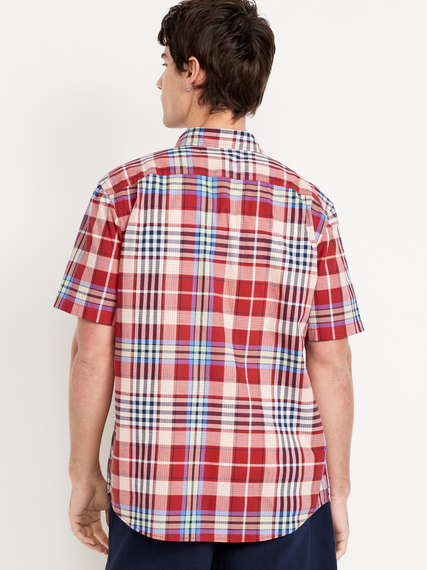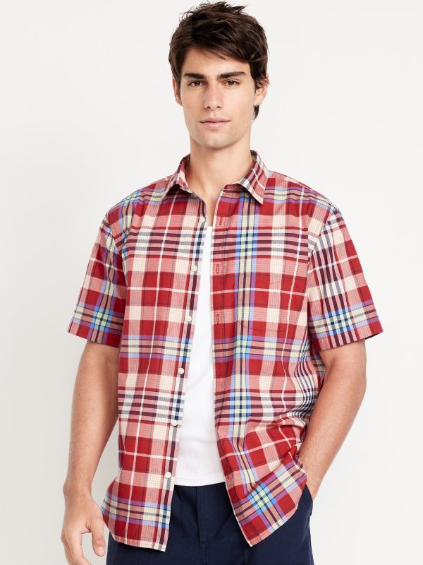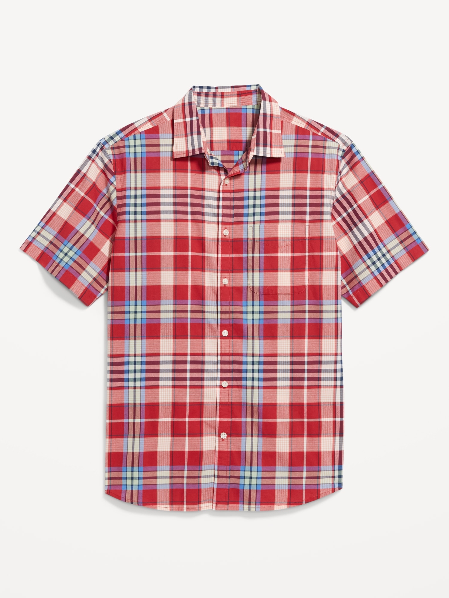 Classic Fit Everyday Plaid Shirt: spread collar, short sleeves, full-button front, patch chest pocket, prints vary, #807396