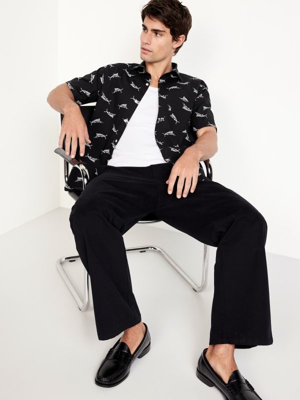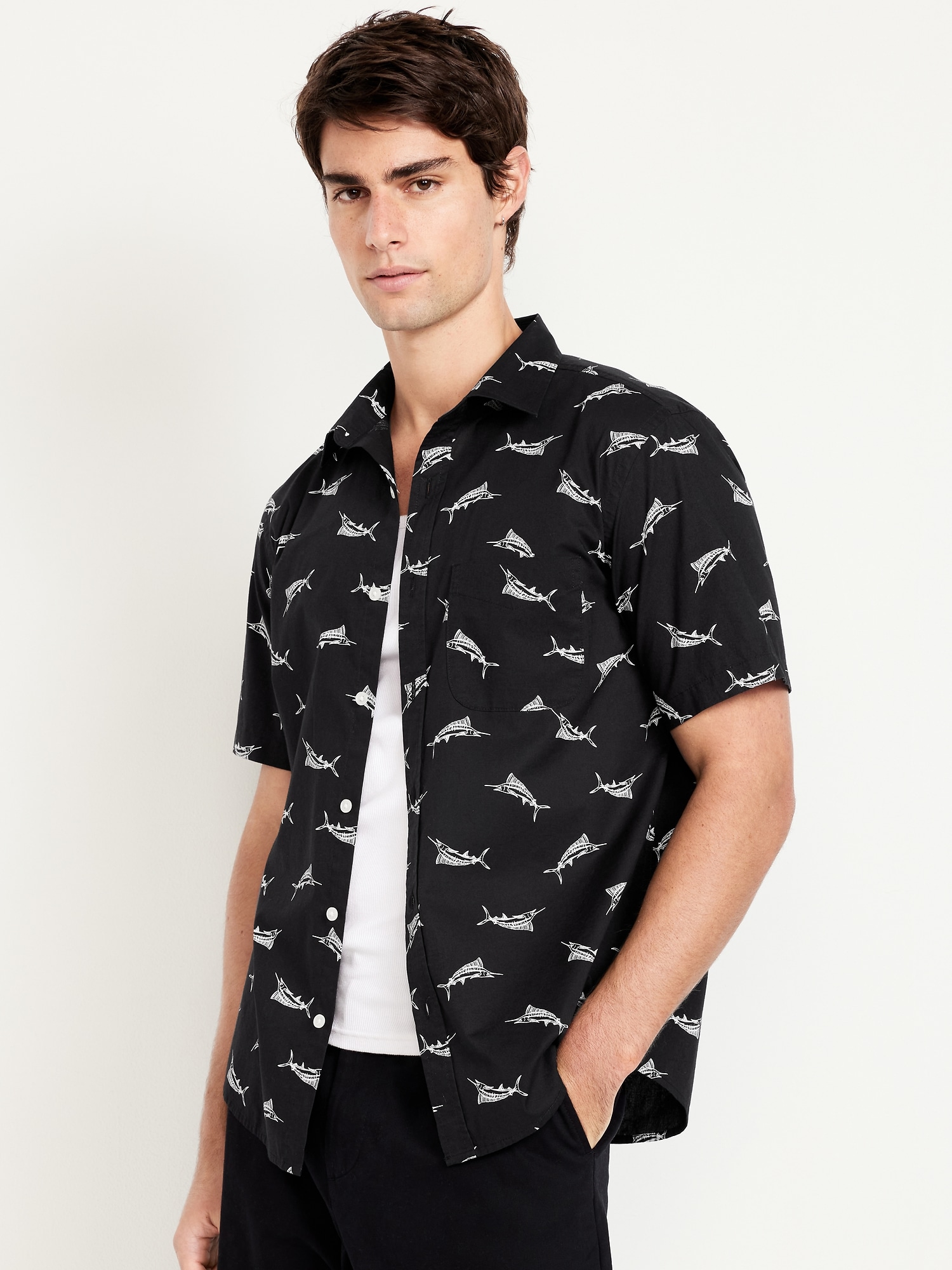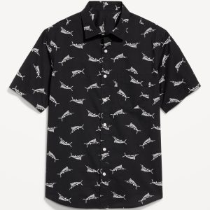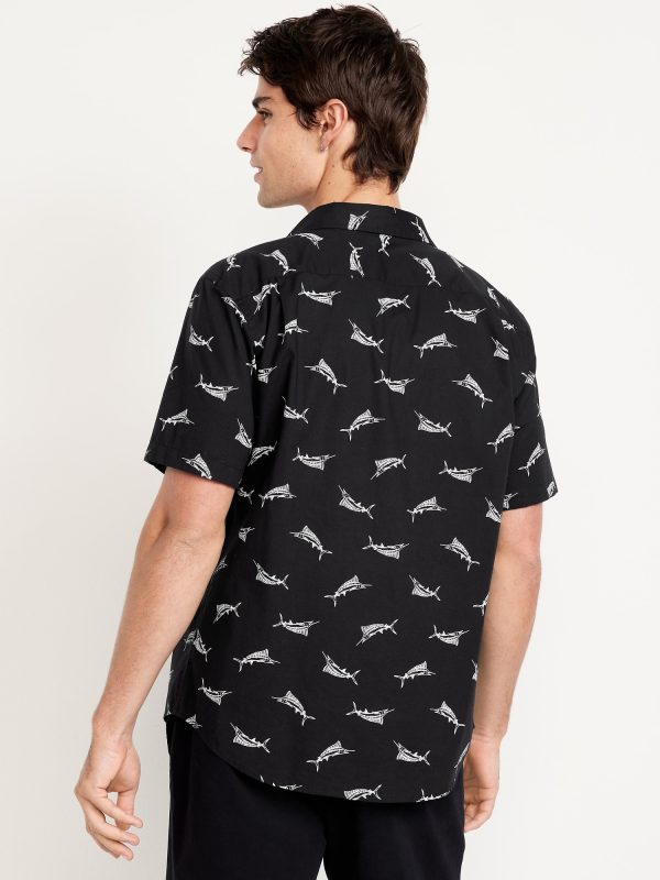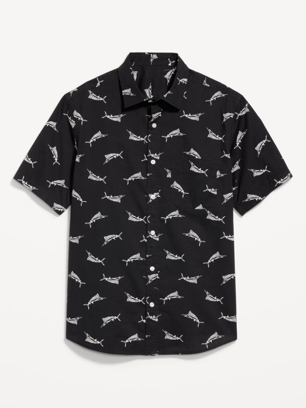 Classic Fit Everyday Poplin Shirt: spread collar, short sleeves, full-button front, patch chest pocket, prints vary, #807396