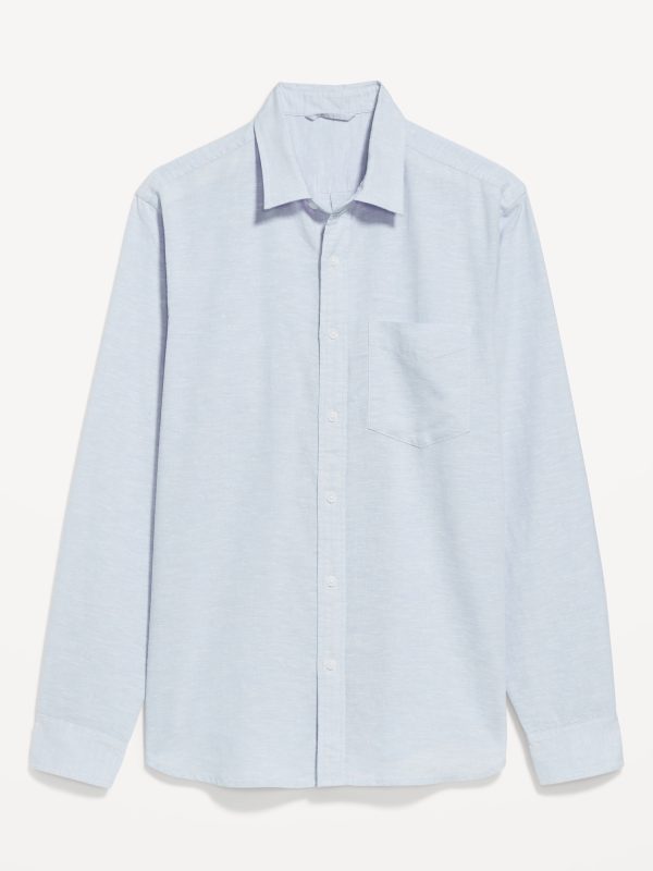 Classic Fit Linen-Blend Shirt: spread collar, long sleeves, buttoned cuffs, full-button front, patch chest pocket, #691163