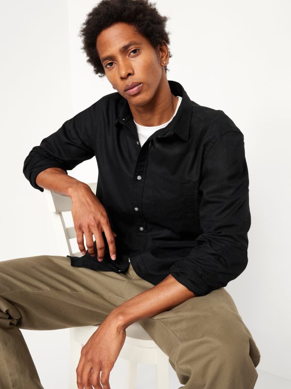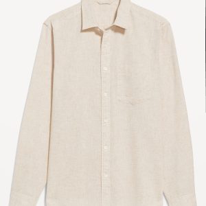 Classic Fit Linen-Blend Shirt: spread collar, long sleeves, buttoned cuffs, full-button front, patch chest pocket, #691163