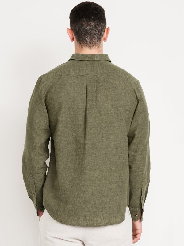 Classic Fit Linen-Blend Shirt: spread collar, long sleeves, buttoned cuffs, full-button front, patch chest pocket, #691163