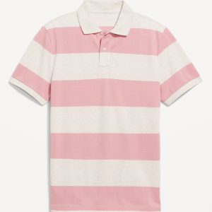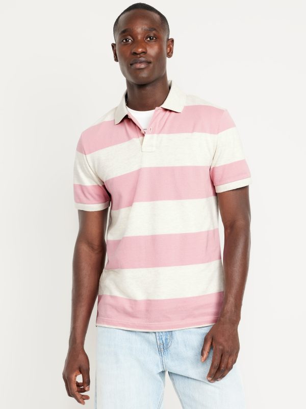Classic Fit Pique Polo: spread rib-knit collar, short sleeves with rib-knit cuffs, buttoned placket, striped print, vented sides, #800818