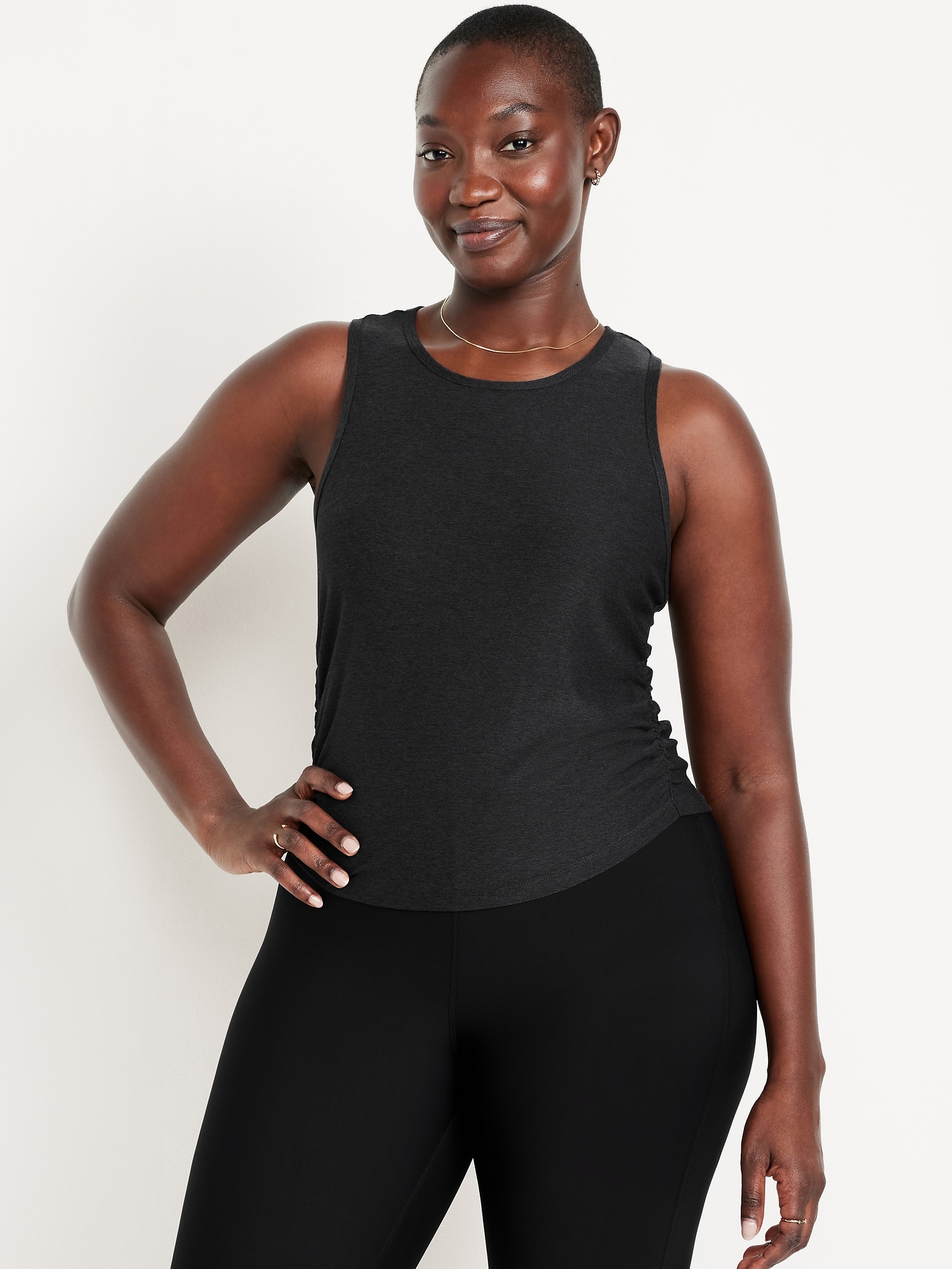 CloudMotion Ruched Tank Top: The new Cloud94 Soft. Versatile, sweat-wicking and soft as a literal cloud.crew neck, sleeveless, ruched sides, curved hem, go-dry wicks moisture, #663785