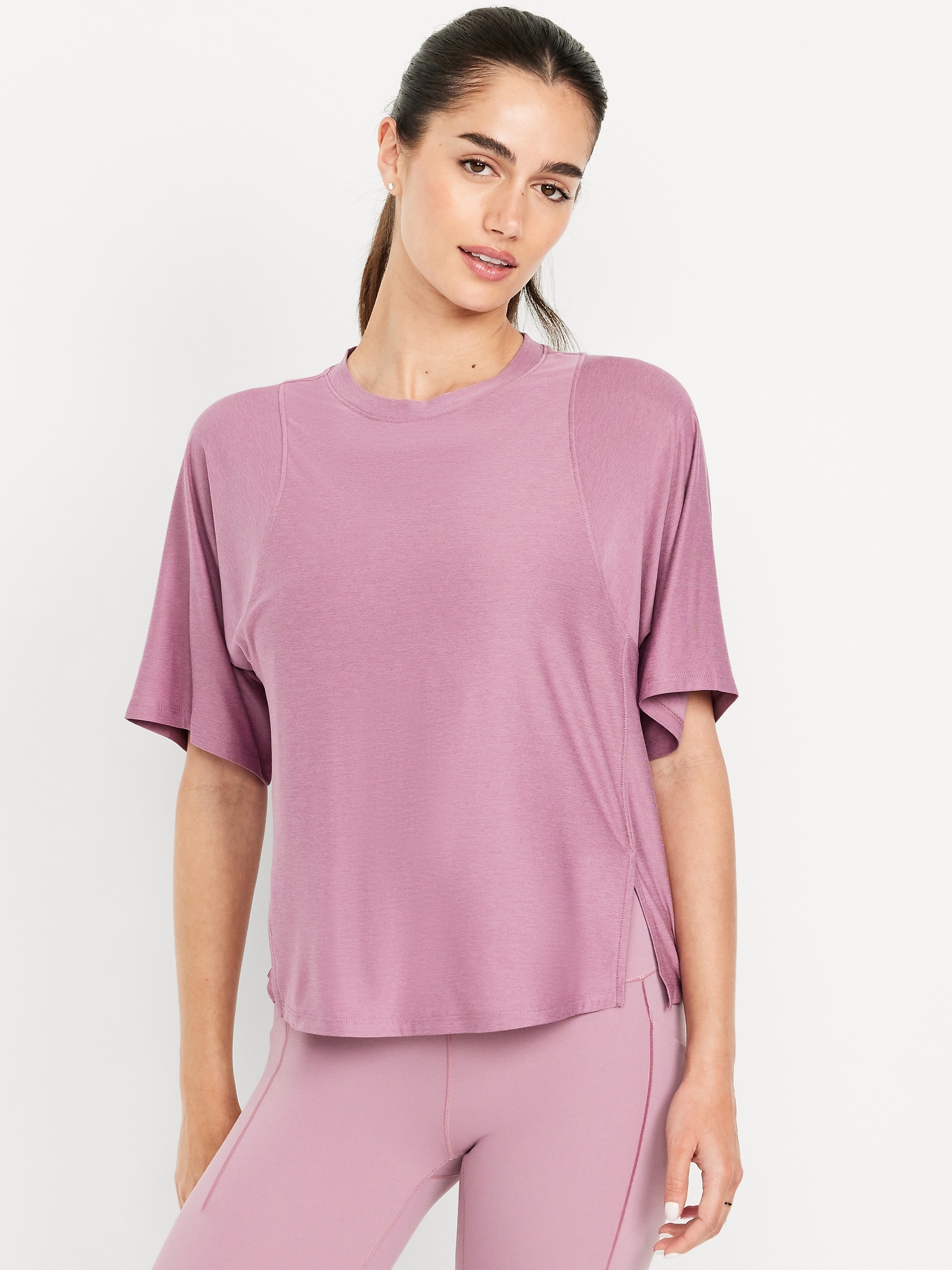 CloudMotion Seamed T-Shirt: The new Cloud94 Soft. Versatile, sweat-wicking and soft as a literal cloud.crew neck, short dolman sleeves, vented sides, go-dry wicks moisture, breathable, #784479