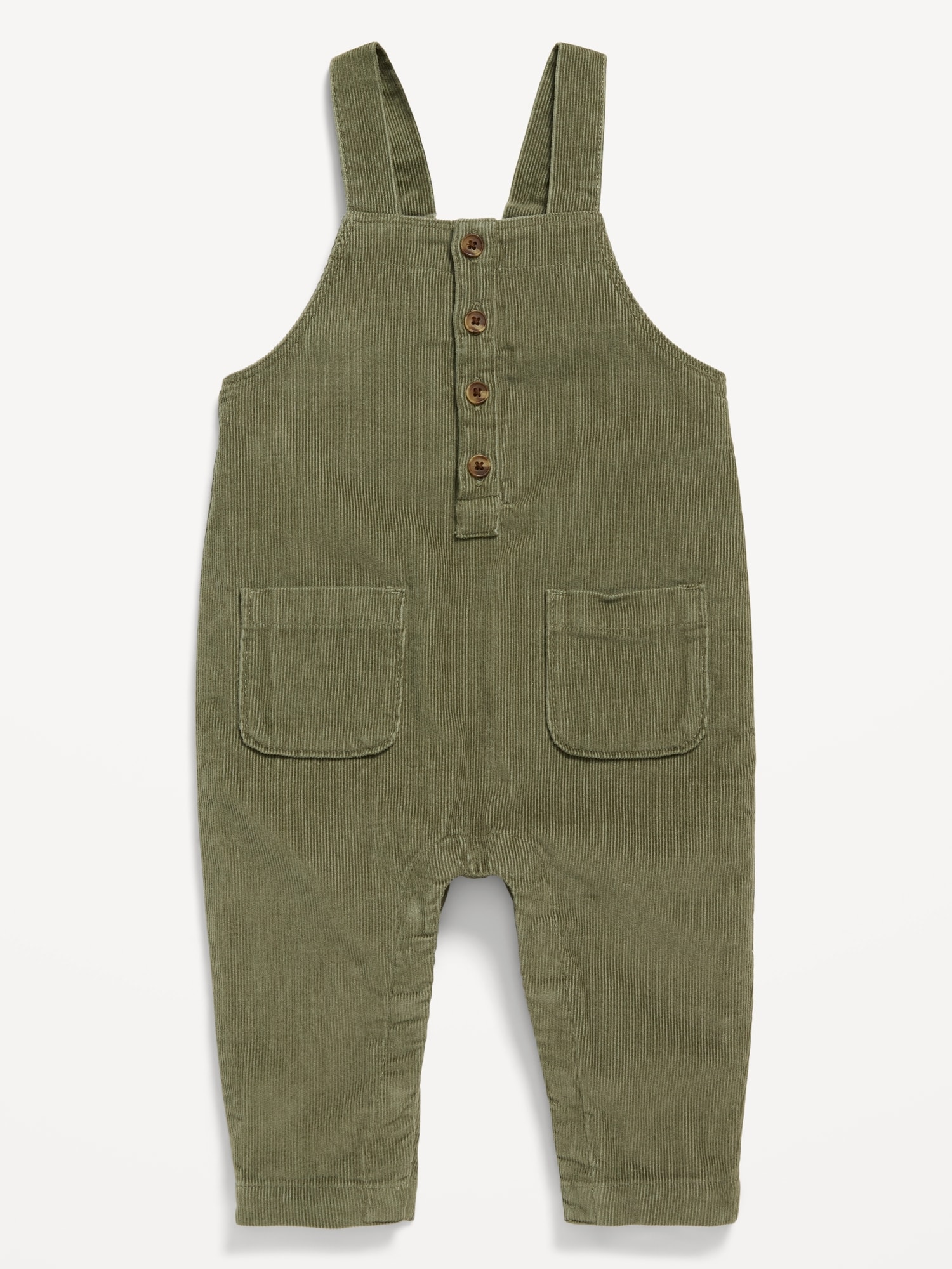 Corduroy Pocket Overalls for Baby: square neckline, shoulder straps, buttoned placket at front, hidden snaps along inseam, #802637