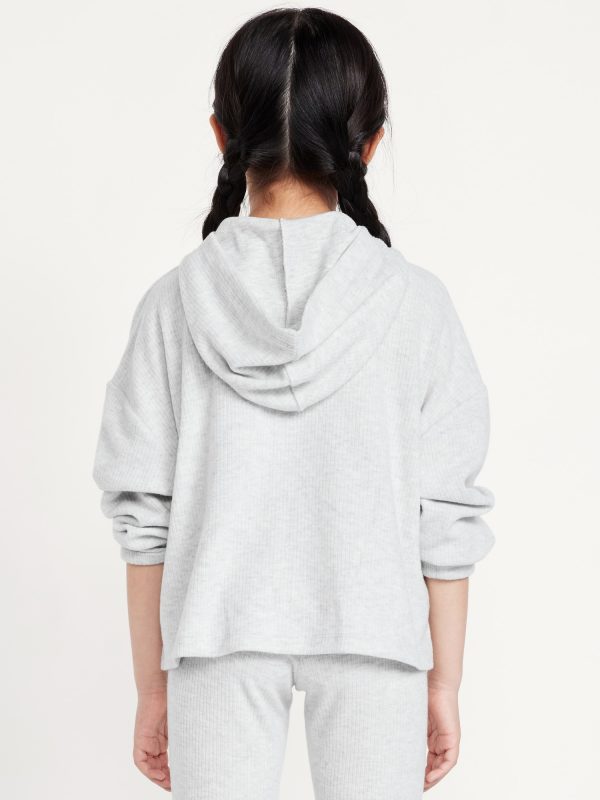 CozePlush Pullover Hoodie and Flare-Leg Pants Set for Girls: built-in hood, long sleeves, drop shoulders, elasticized waistband, flared leg, online exclusive, #787755