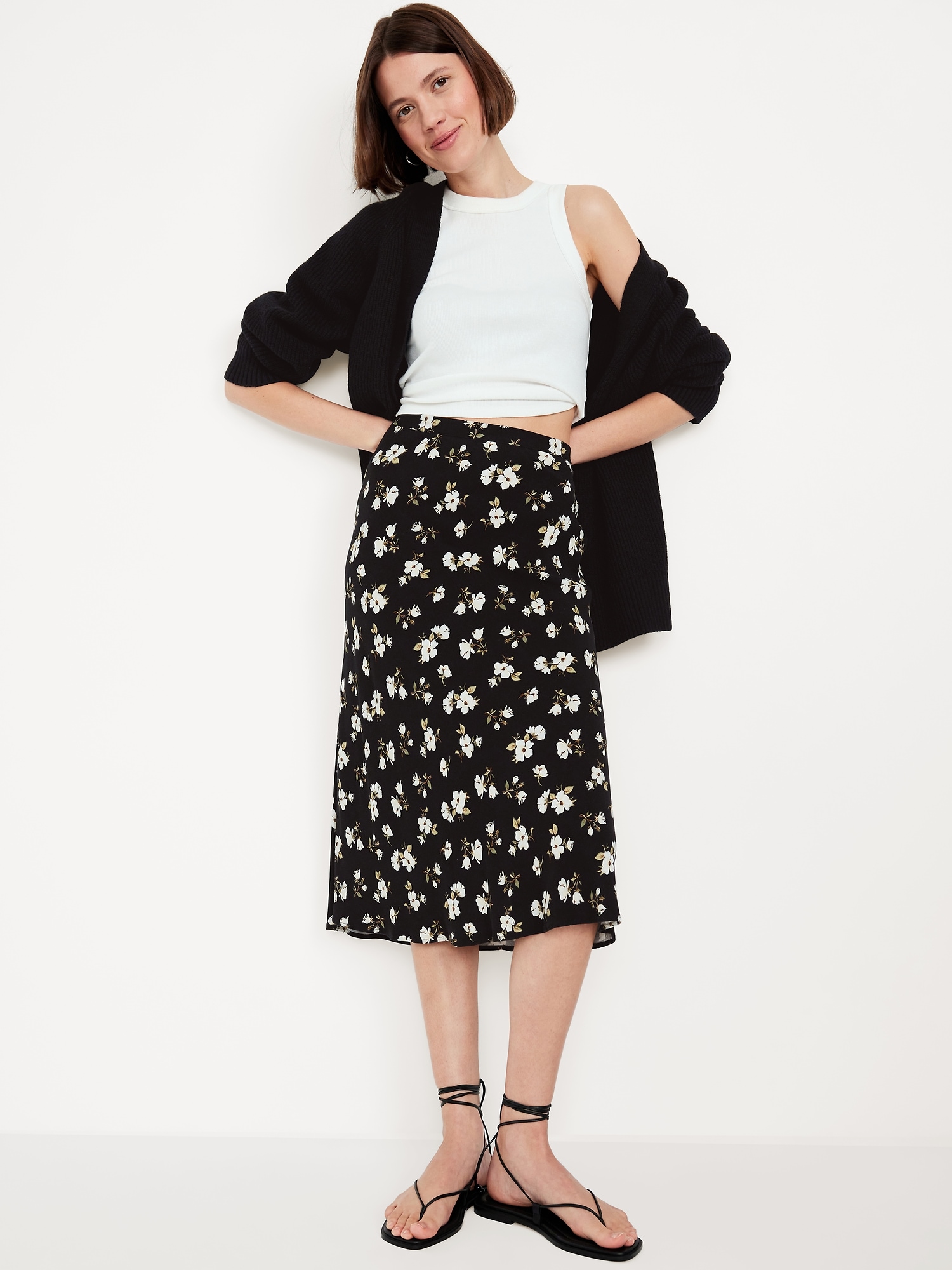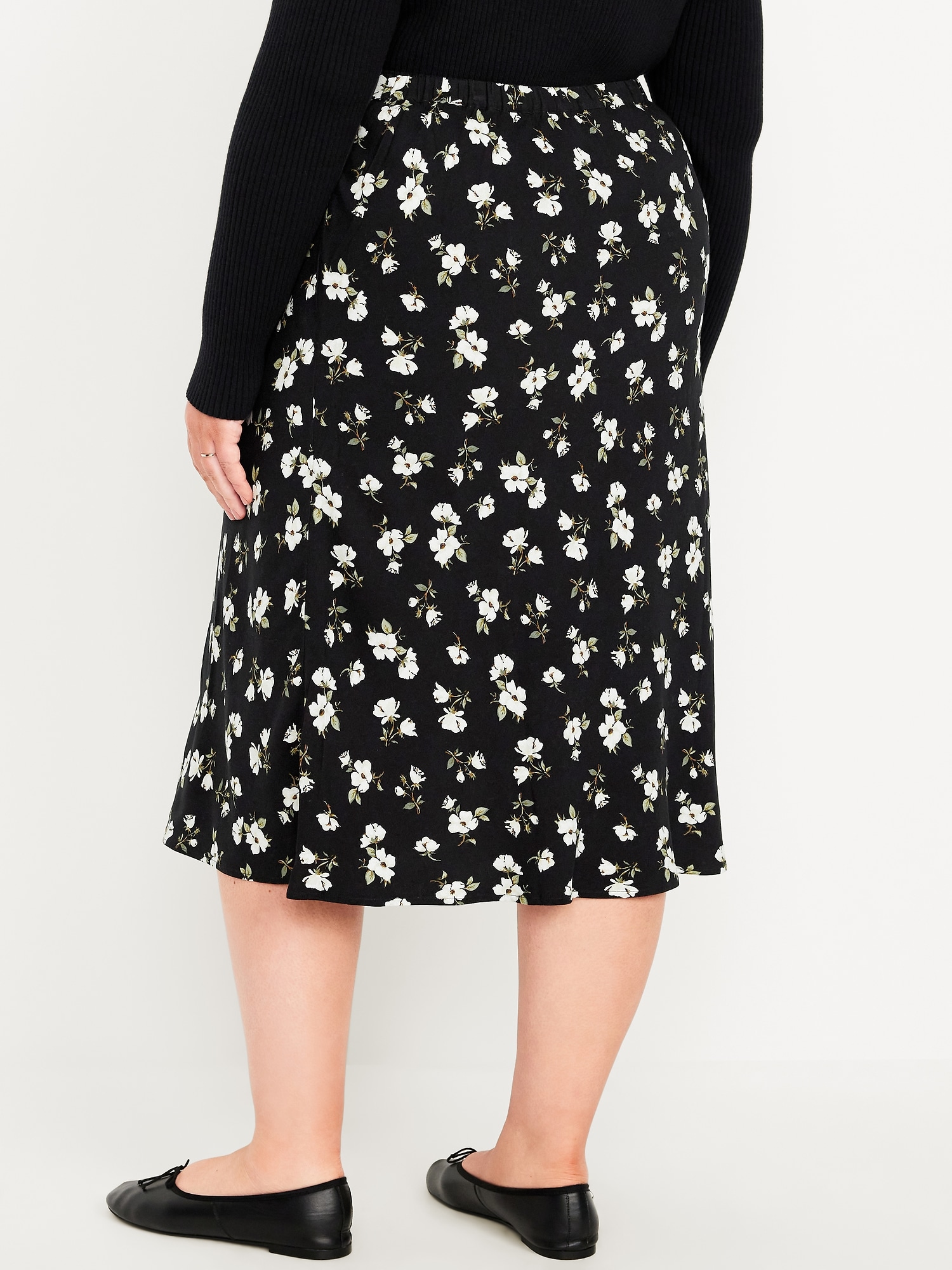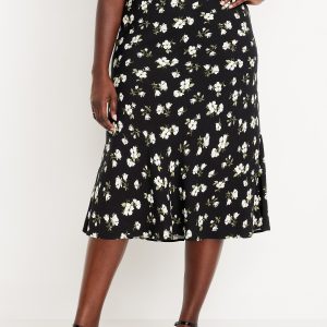 Crepe A-Line Midi Skirt: elastic back waist, pull-on style, prints vary, #681199
