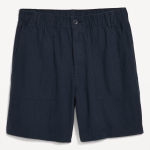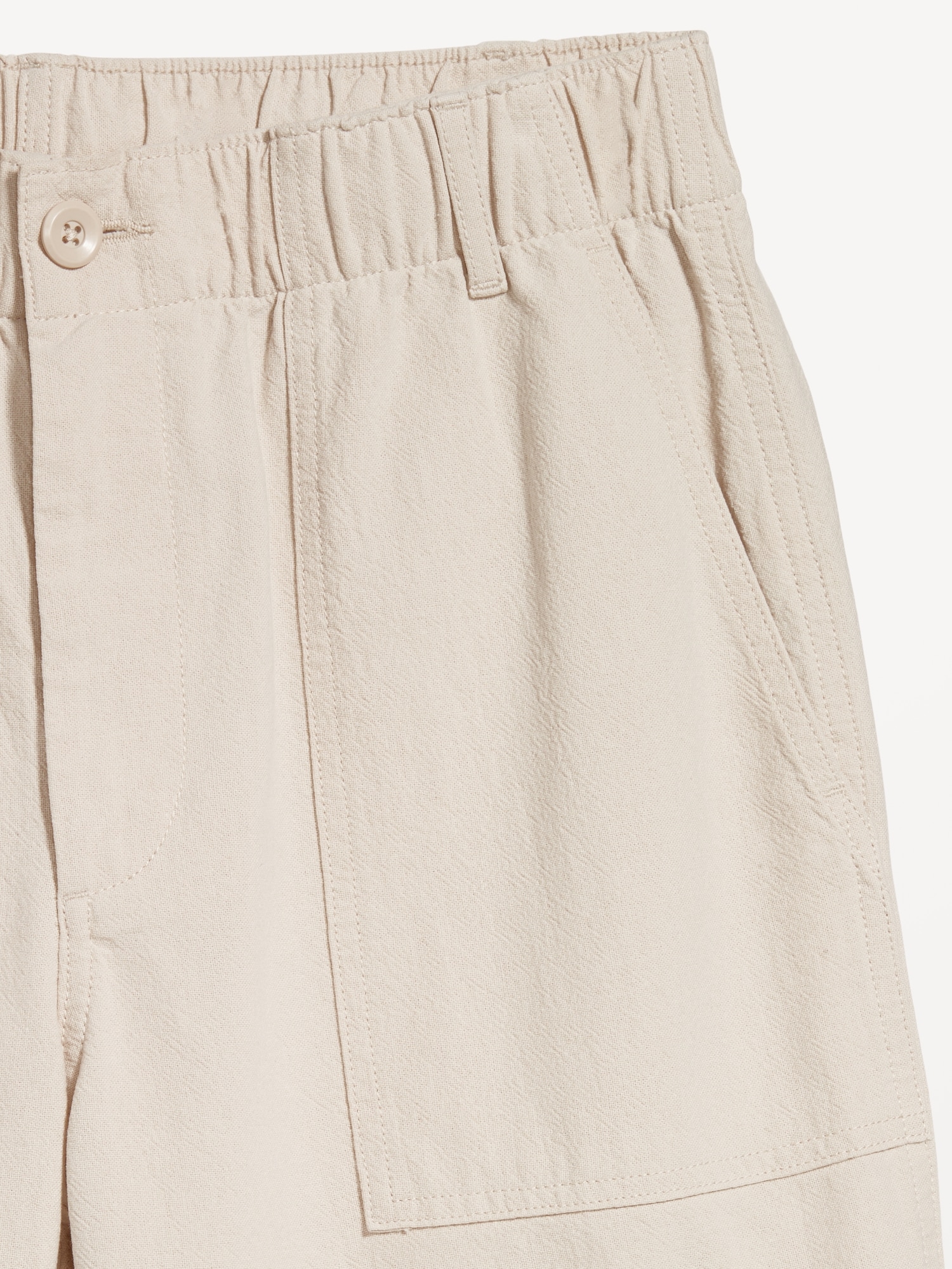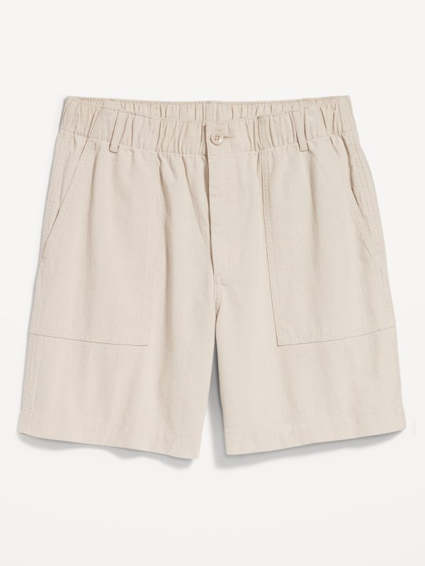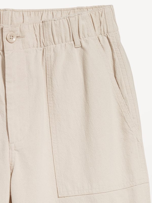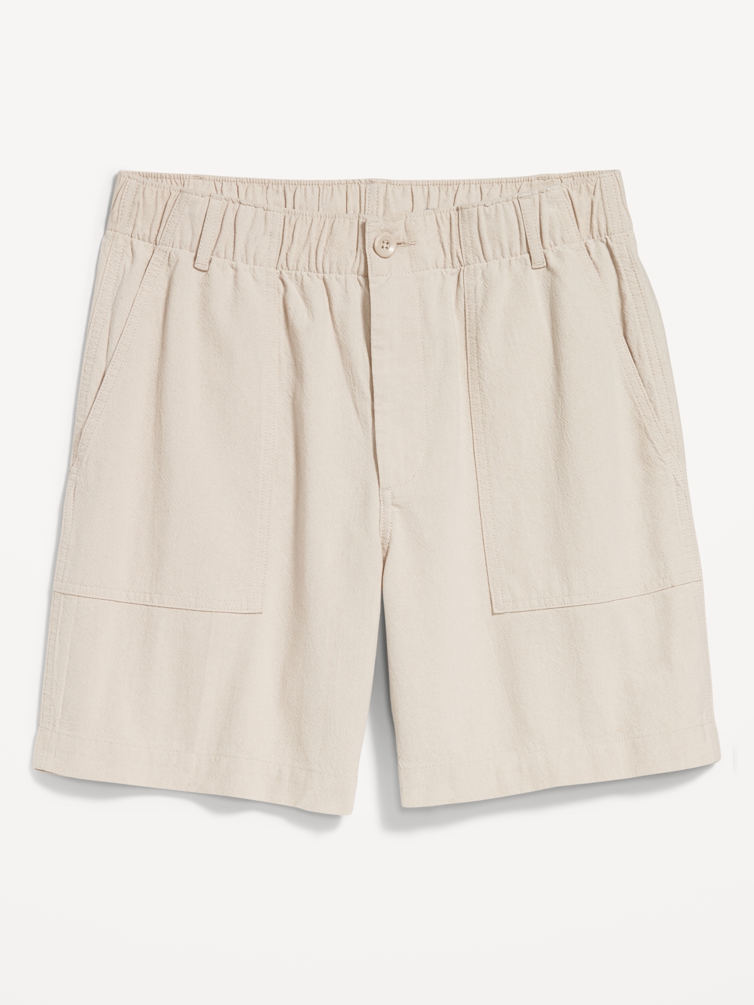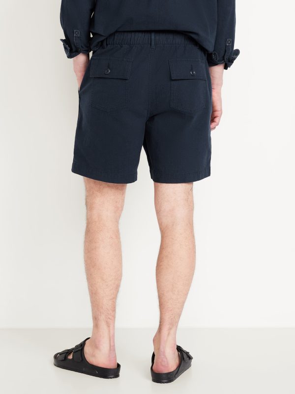 Crepe Workwear Shorts — 7-inch inseam: elastic-drawstring waistband, button front, front utility pockets, back button-flap pockets, easy pull-on style, #751383