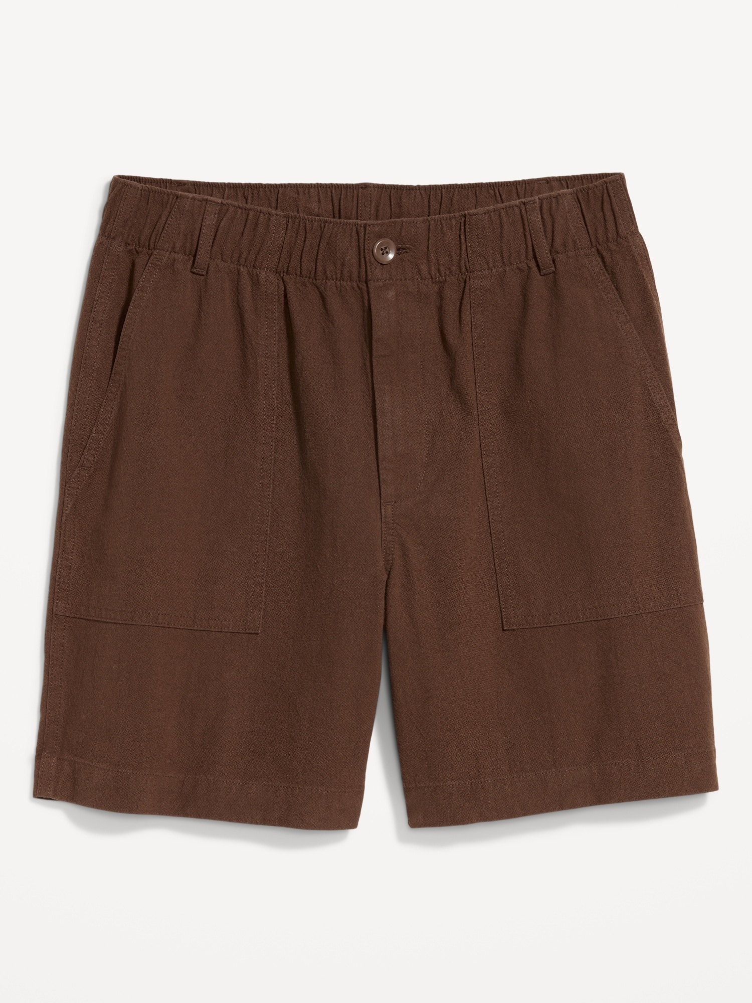 Crepe Workwear Shorts — 7-inch inseam: elastic-drawstring waistband, button front, front utility pockets, back button-flap pockets, easy pull-on style, #751383