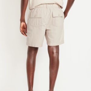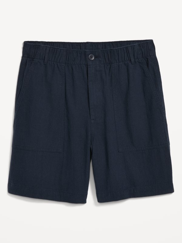 Crepe Workwear Shorts — 7-inch inseam: elastic-drawstring waistband, button front, front utility pockets, back button-flap pockets, easy pull-on style, #751383