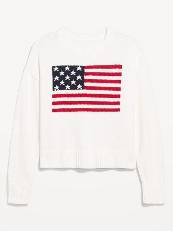 Crew-Neck Flag-Graphic Sweater: crew neck, long sleeves, front flag graphic, rib-knit trim, pullover style, #672986