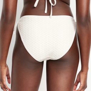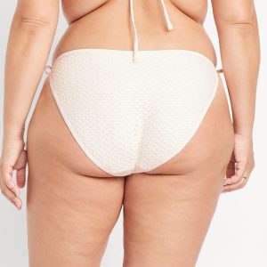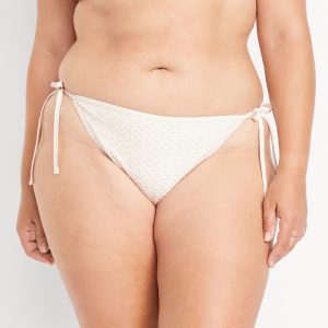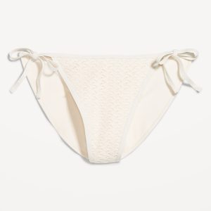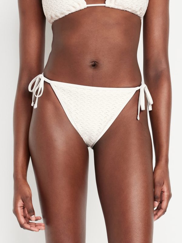 Crochet String Bikini Swim Bottoms: elastic waist and leg openings, side ties, crochet knit with lining, #747910