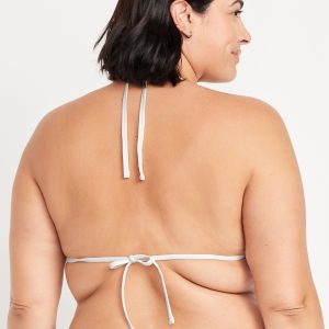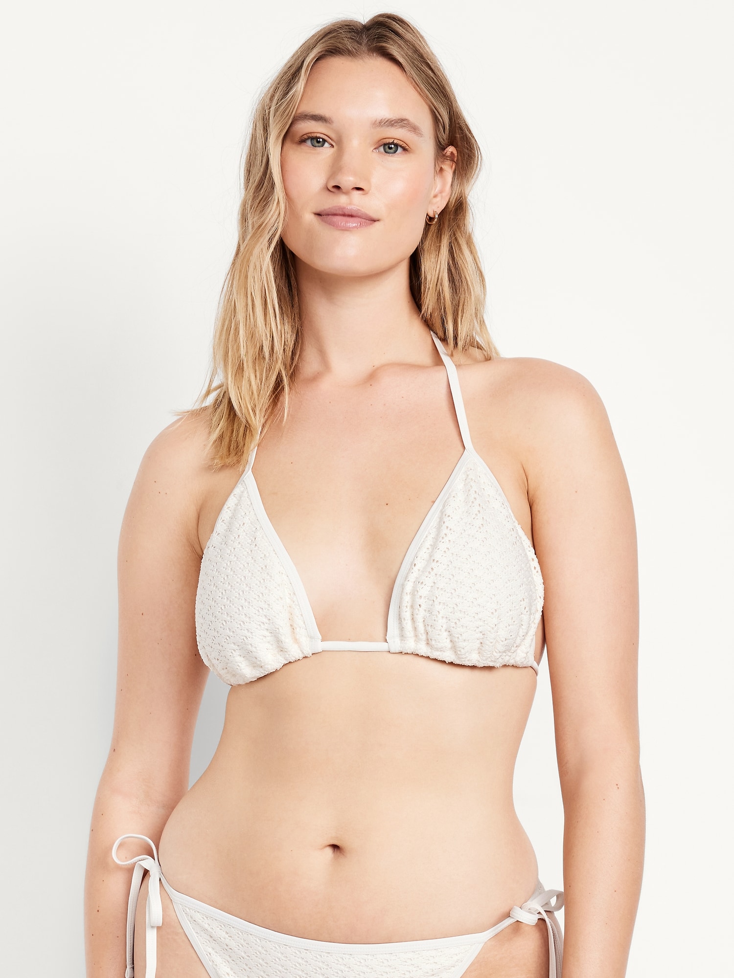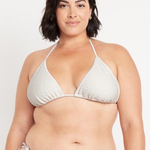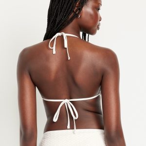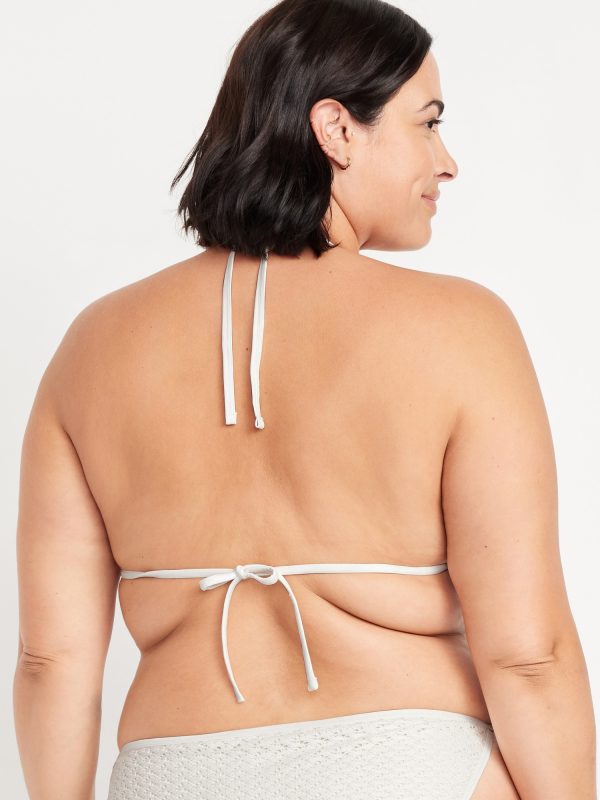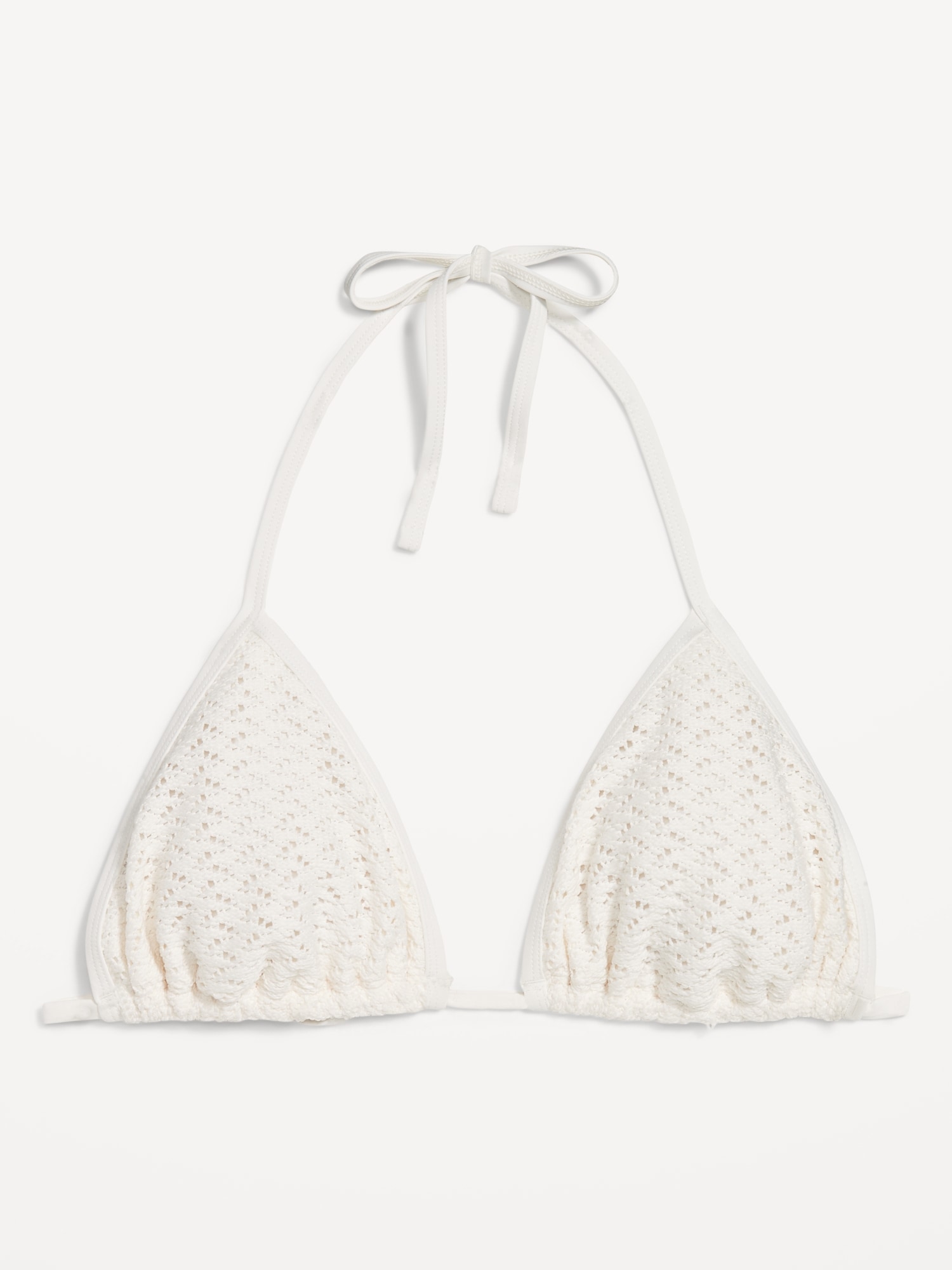 Crochet Triangle Bikini Swim Top: tie-neck halter straps, removable pads, tie-back strap, #747897