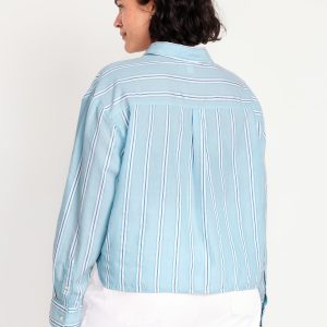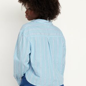 Cropped Button-Down Striped Shirt