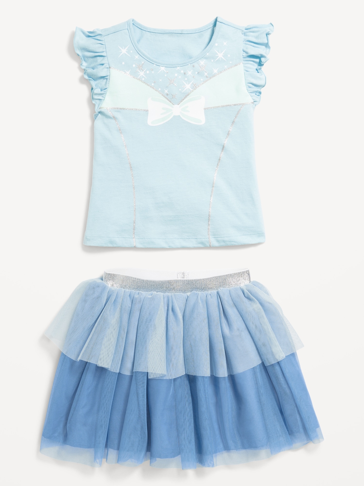 Disney© Princess T-Shirt and Tutu Skirt Set for Toddler Girls: crew neck, short ruffled sleeves, licensed graphic at front, matching flared tutu skirt, elasticized waistband, ©Disney, #805554
