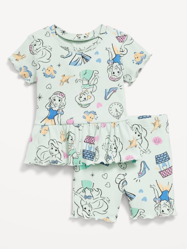 Disney© Ribbed Lettuce-Edge Top and Shorts Set for Baby: crew neck, short sleeves, peplum hem, lettuce edge cuffs and hem, matching shorts, elasticized waistband, all-over print, lettuce edge hem, licensed graphic, © Disney., #694154