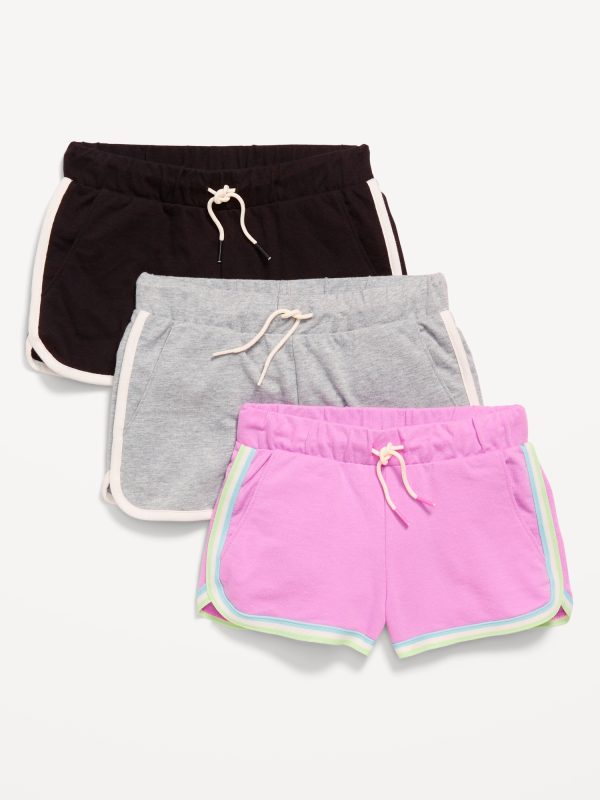 Dolphin-Hem Cheer Shorts 3-Pack for Girls: elasticized waistband, adjustable drawstring, on-seam welt pockets, dolphin hem, easy pull-on style, online exclusive, #693666