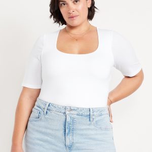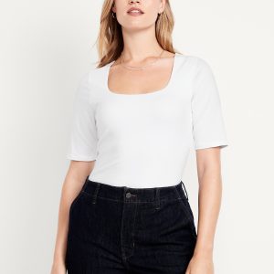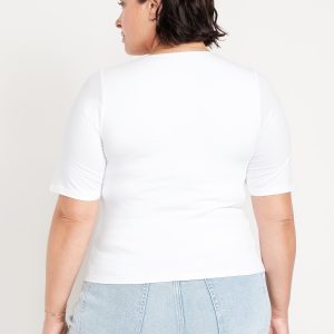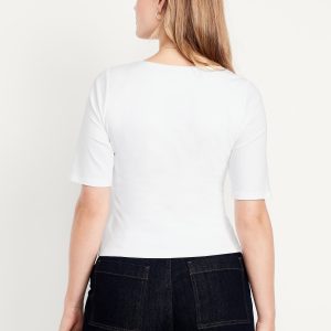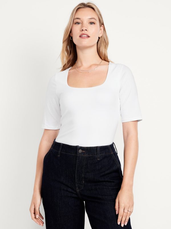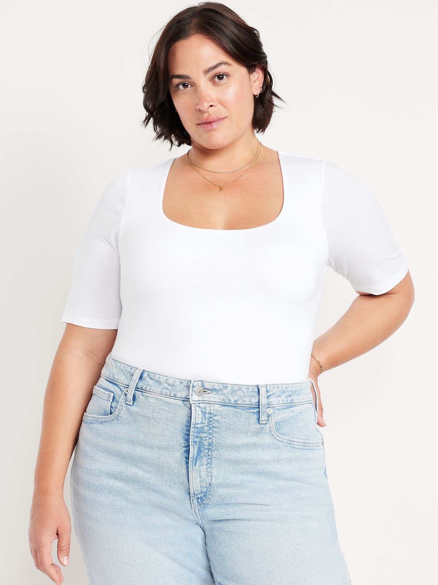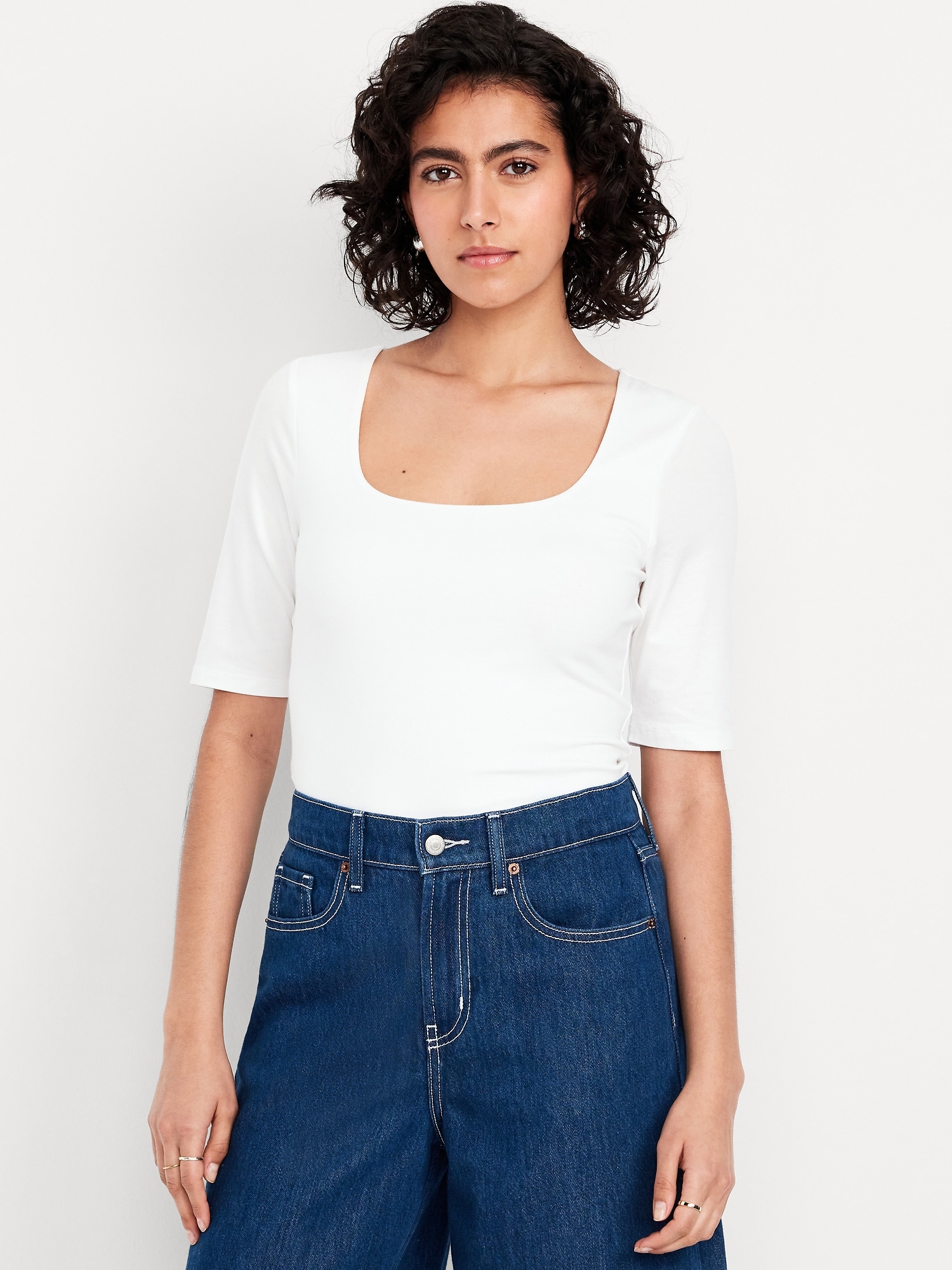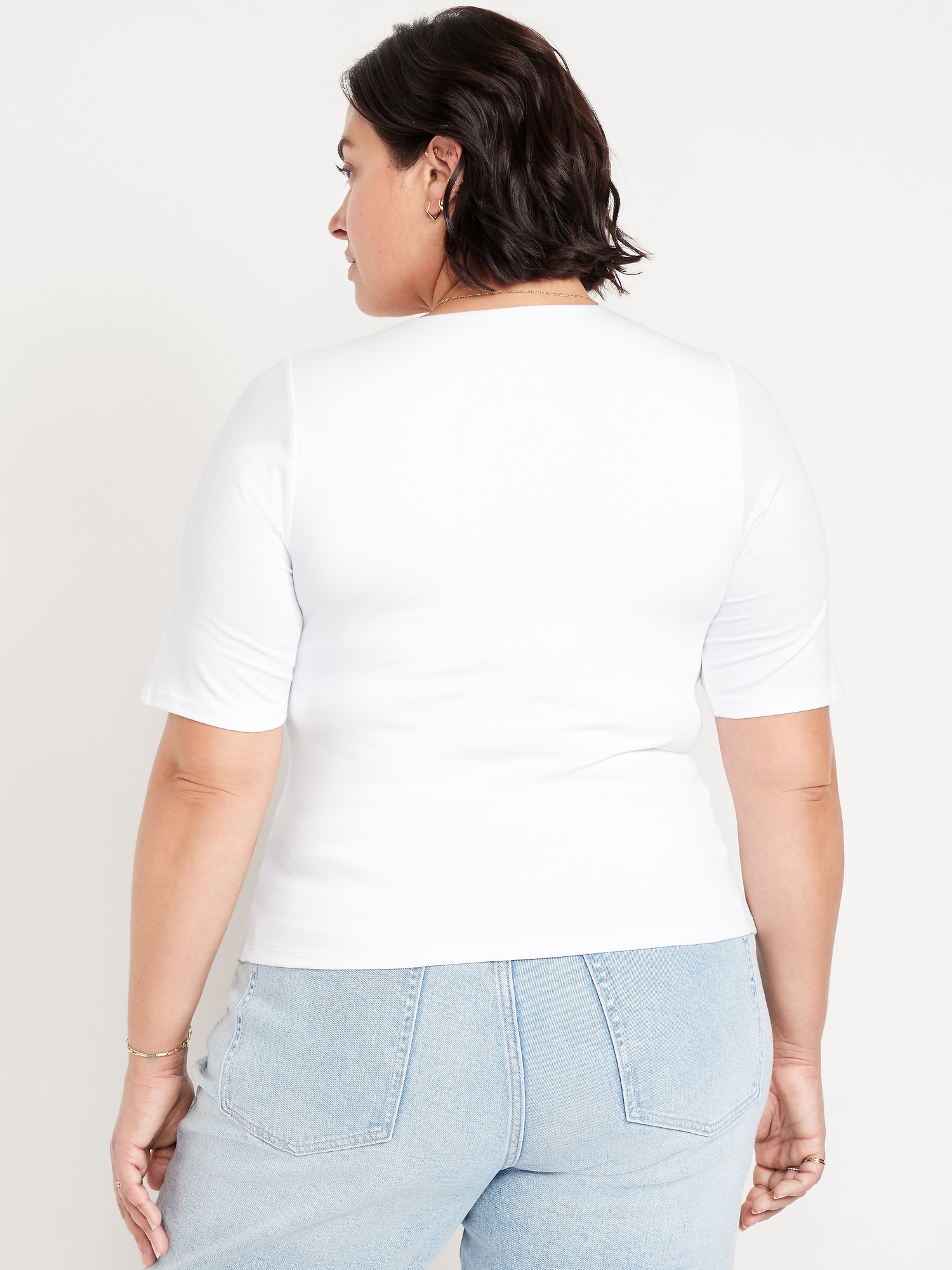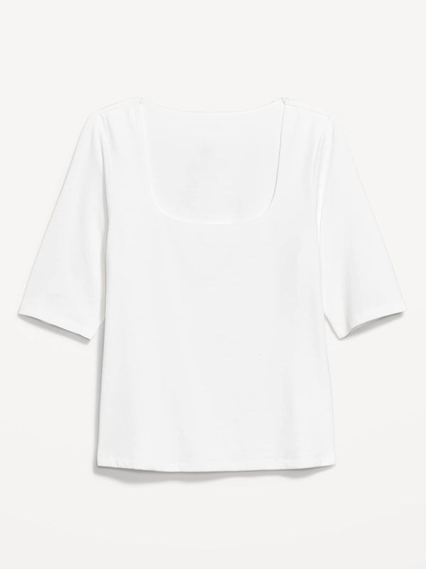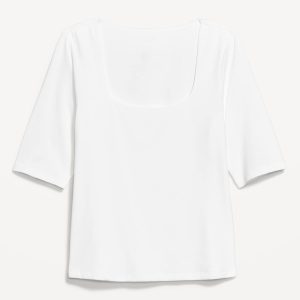 Double-Layer Elbow-Sleeve Scoop-Neck T-Shirt: scoop neck, short sleeves, #749283