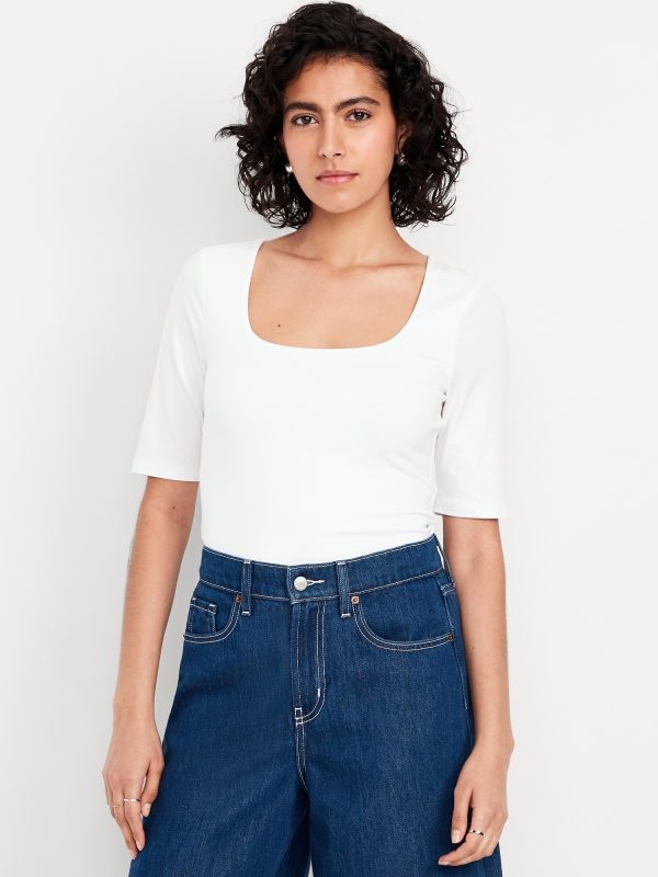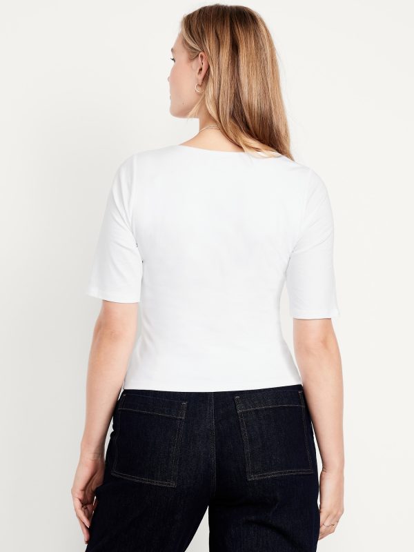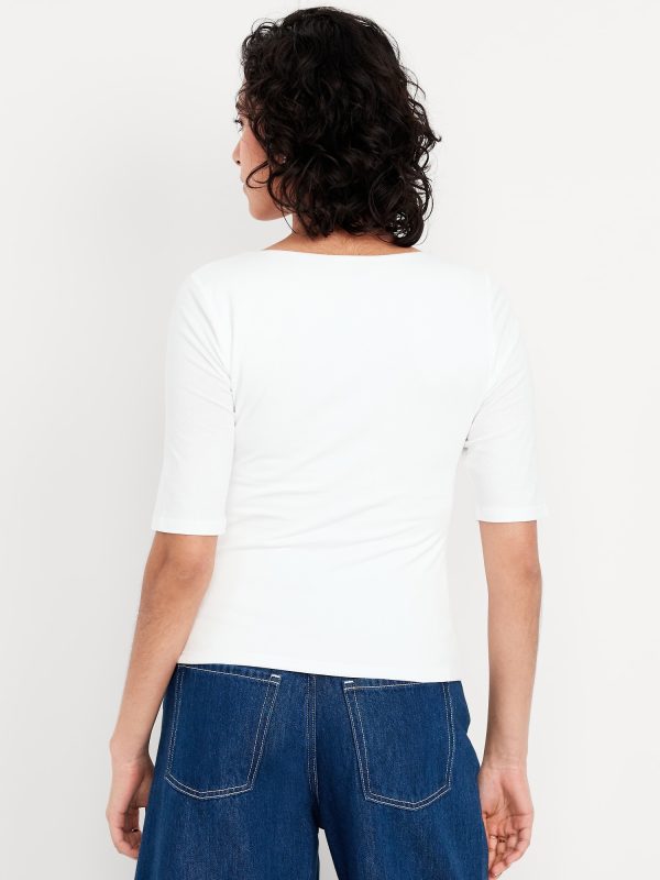 Double-Layer Elbow-Sleeve Scoop-Neck T-Shirt