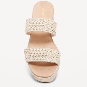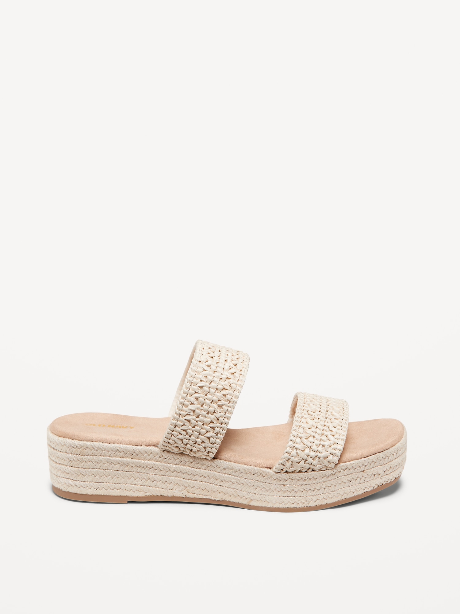 Double-Strap Espadrille Sandals: jute platform upper, cushioned foot bed, woven straps, #663884