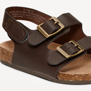 Double-Strap Sandals for Baby: ankle strap, decorative bow across foot, faux-cork midsole, cushioned foot bed, #762298