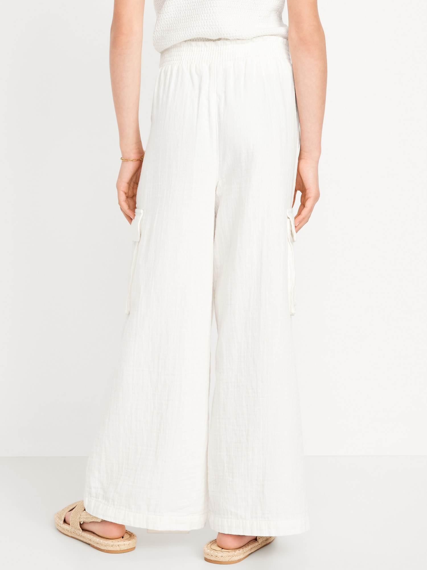 Double-Weave Wide-Leg Cargo Pants for Girls: elasticized waistband, diagonal on-seam pockets, flap cargo pockets, wide leg, #767126