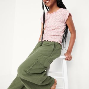 Double-Weave Wide-Leg Cargo Pants for Girls