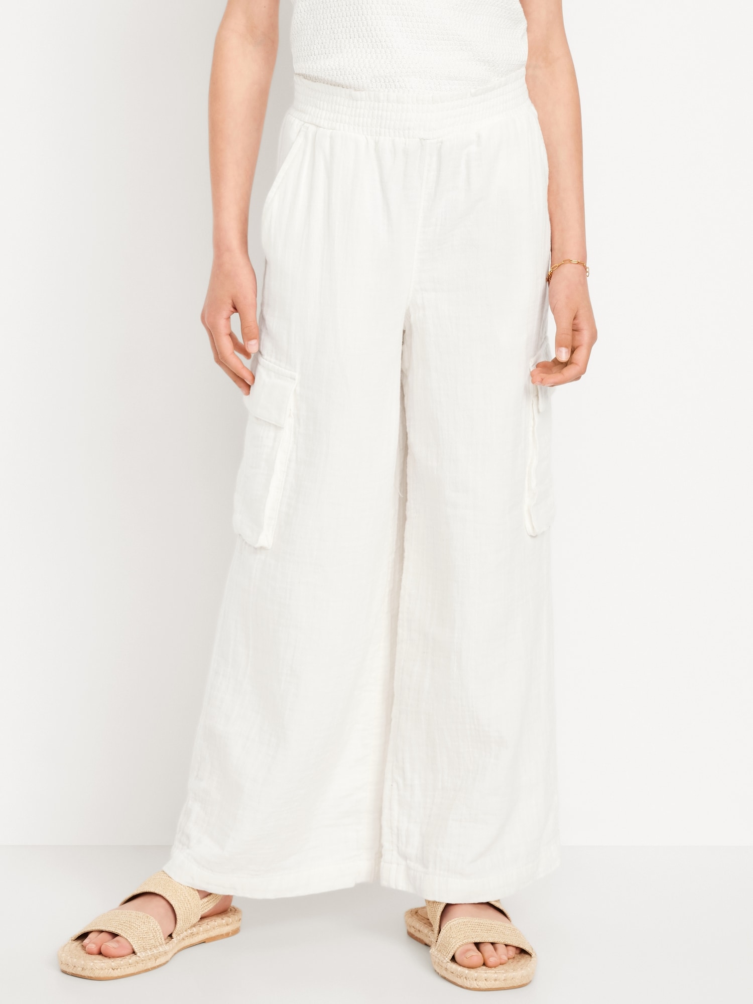 Double-Weave Wide-Leg Cargo Pants for Girls: elasticized waistband, diagonal on-seam pockets, flap cargo pockets, wide leg, #767126