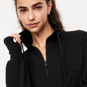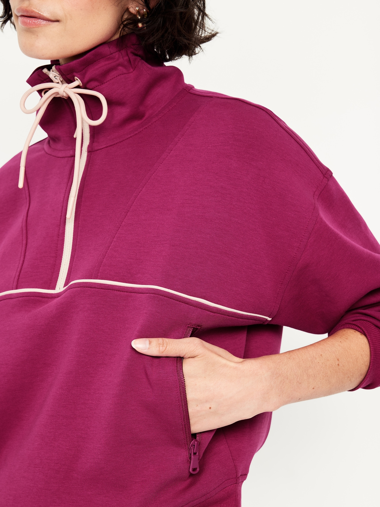 Dynamic Fleece Half Zip: Featuring Dynamic Fleece. Soft, smooth fleece plus made-to-move stretch.drawstring funnel neck, long sleeves, thumbhole cuffs, zip pockets, pullover style, #799503