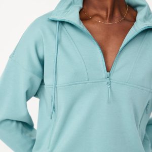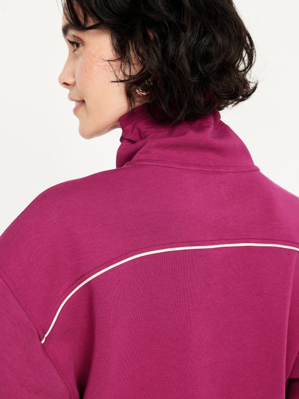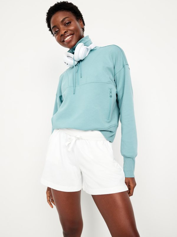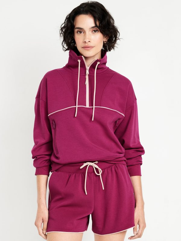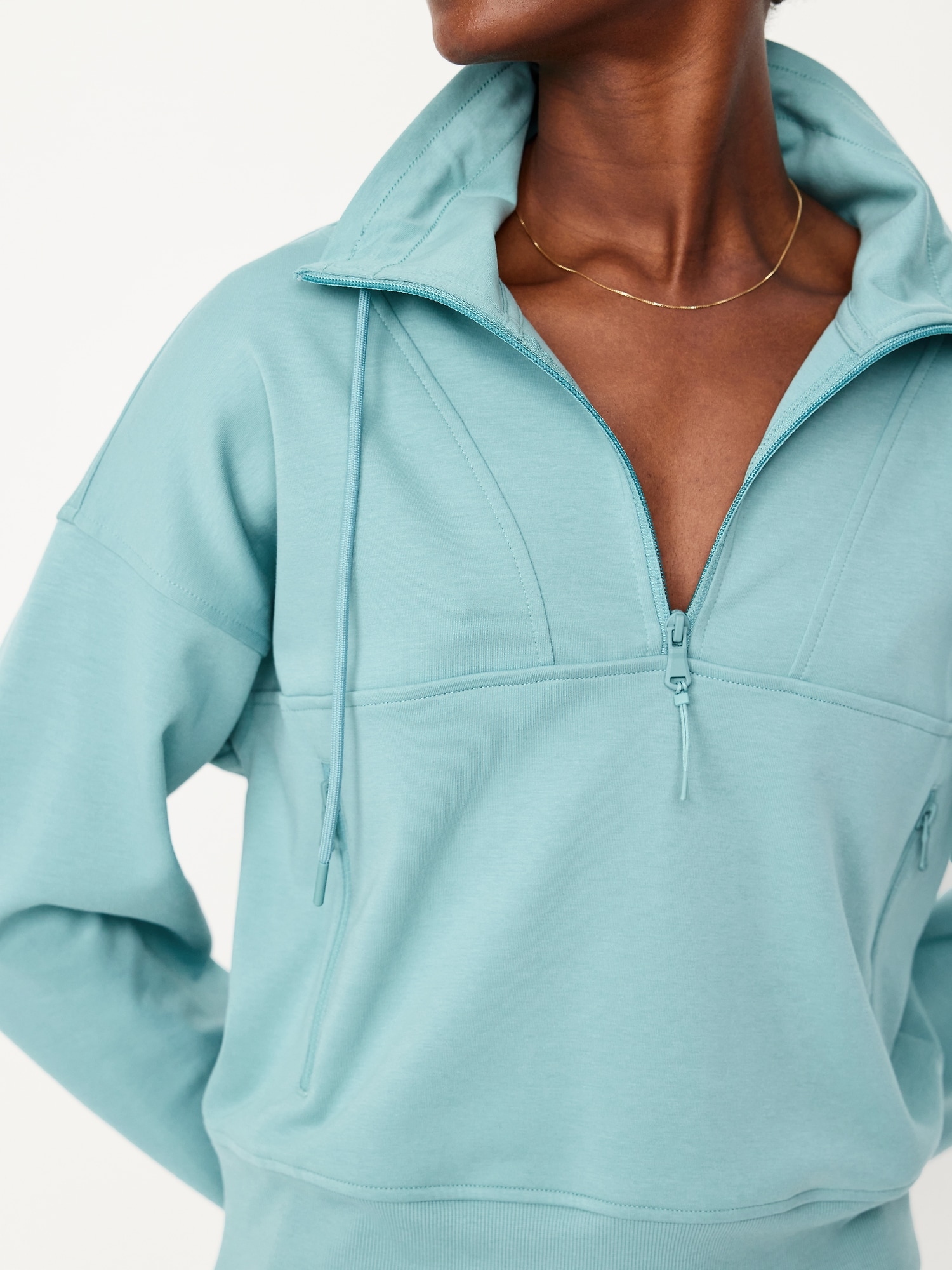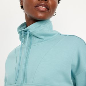 Dynamic Fleece Half Zip: Featuring Dynamic Fleece. Soft, smooth fleece plus made-to-move stretch.drawstring funnel neck, long sleeves, thumbhole cuffs, zip pockets, pullover style, #799503