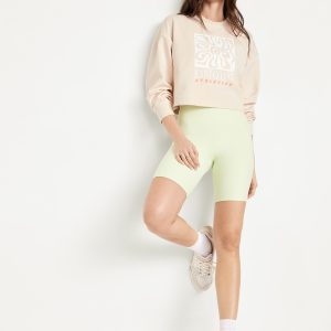 Dynamic Fleece Oversized Crop Sweatshirt: Featuring Dynamic Fleece. Soft, smooth fleece plus made-to-move stretch.rib-knit crew neck, long dolman sleeves, graphic varies, pullover style, #692129