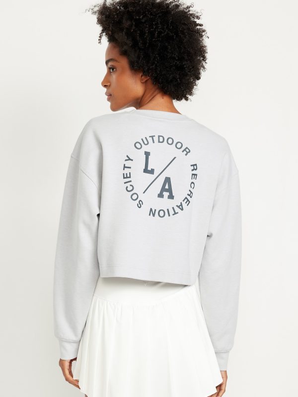 Dynamic Fleece Oversized Crop Sweatshirt: Featuring Dynamic Fleece. Soft, smooth fleece plus made-to-move stretch.rib-knit crew neck, long dolman sleeves, graphic varies, pullover style, #692129