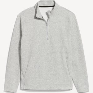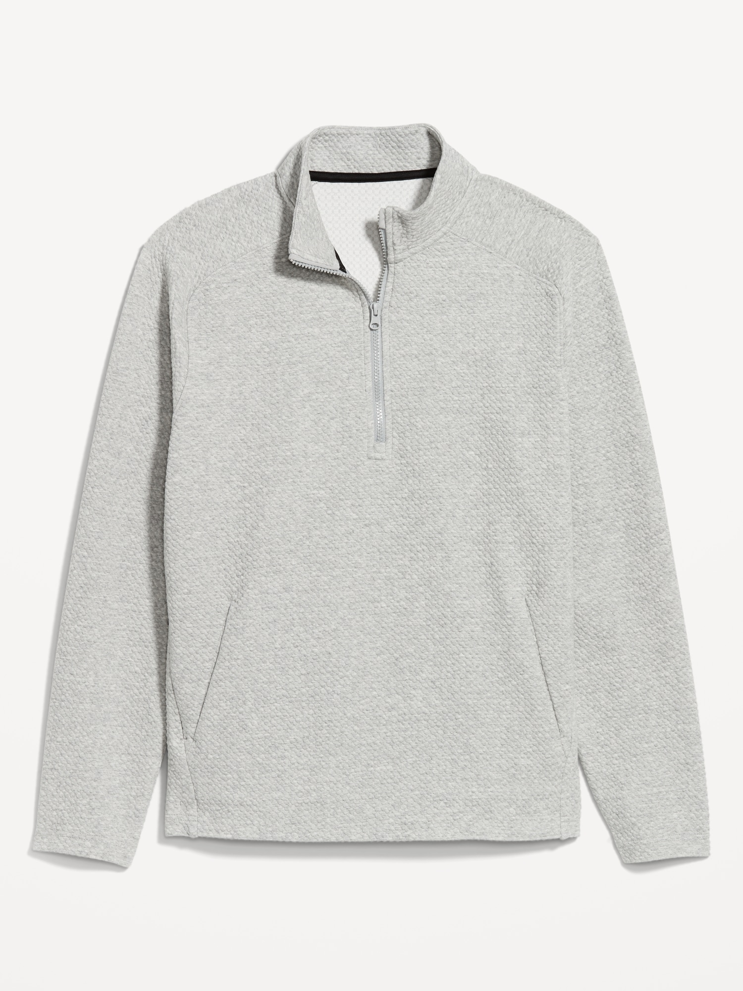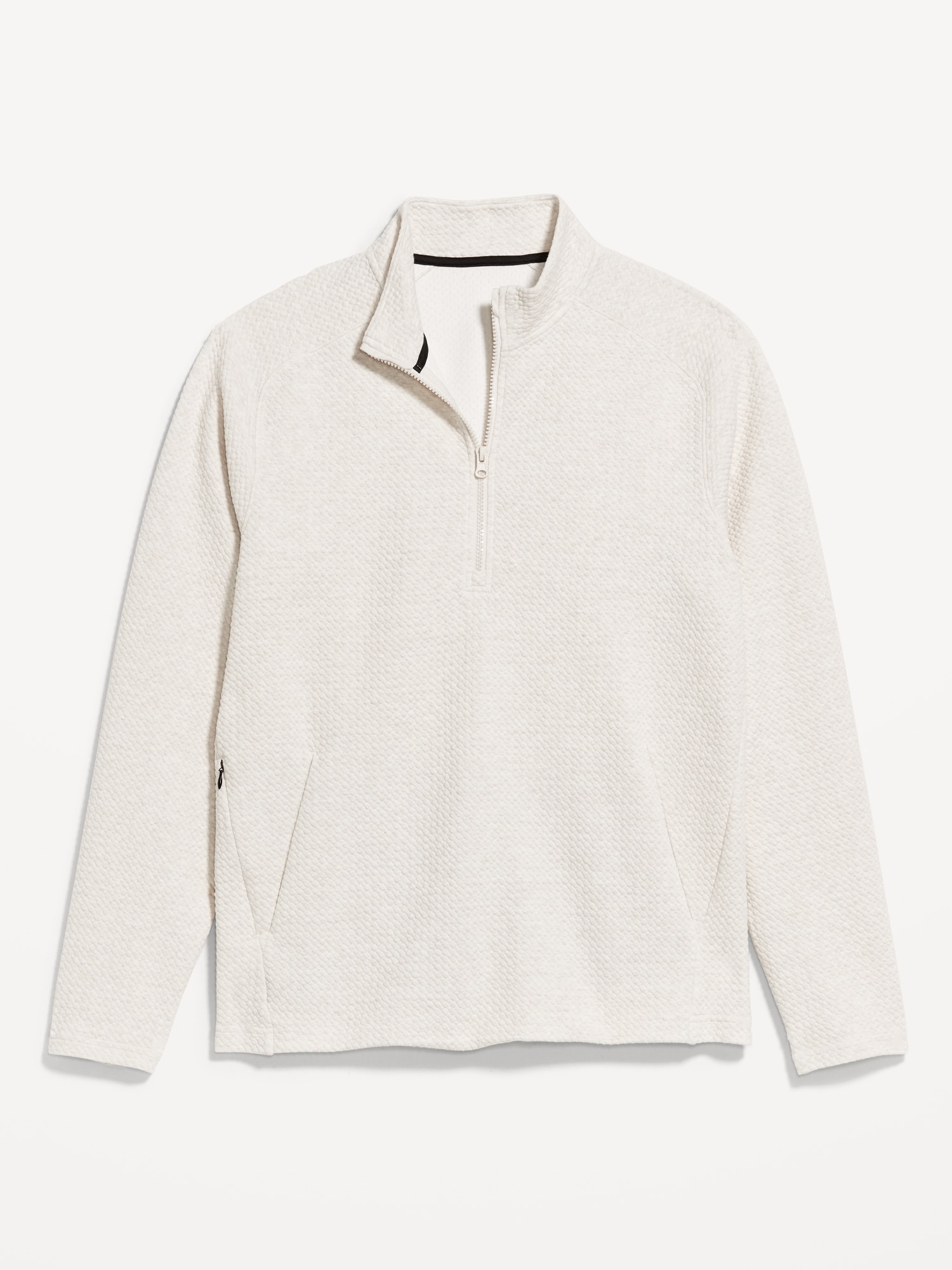 Dynamic Fleece Textured Half Zip: Featuring Dynamic Fleece. Soft, smooth fleece plus made-to-move stretch.mock neck, long sleeves, half-zip front, front pockets, hidden zip stash pocket, pullover style, #564828