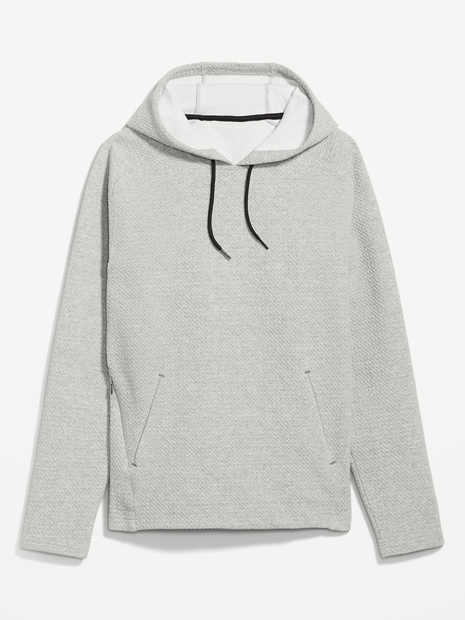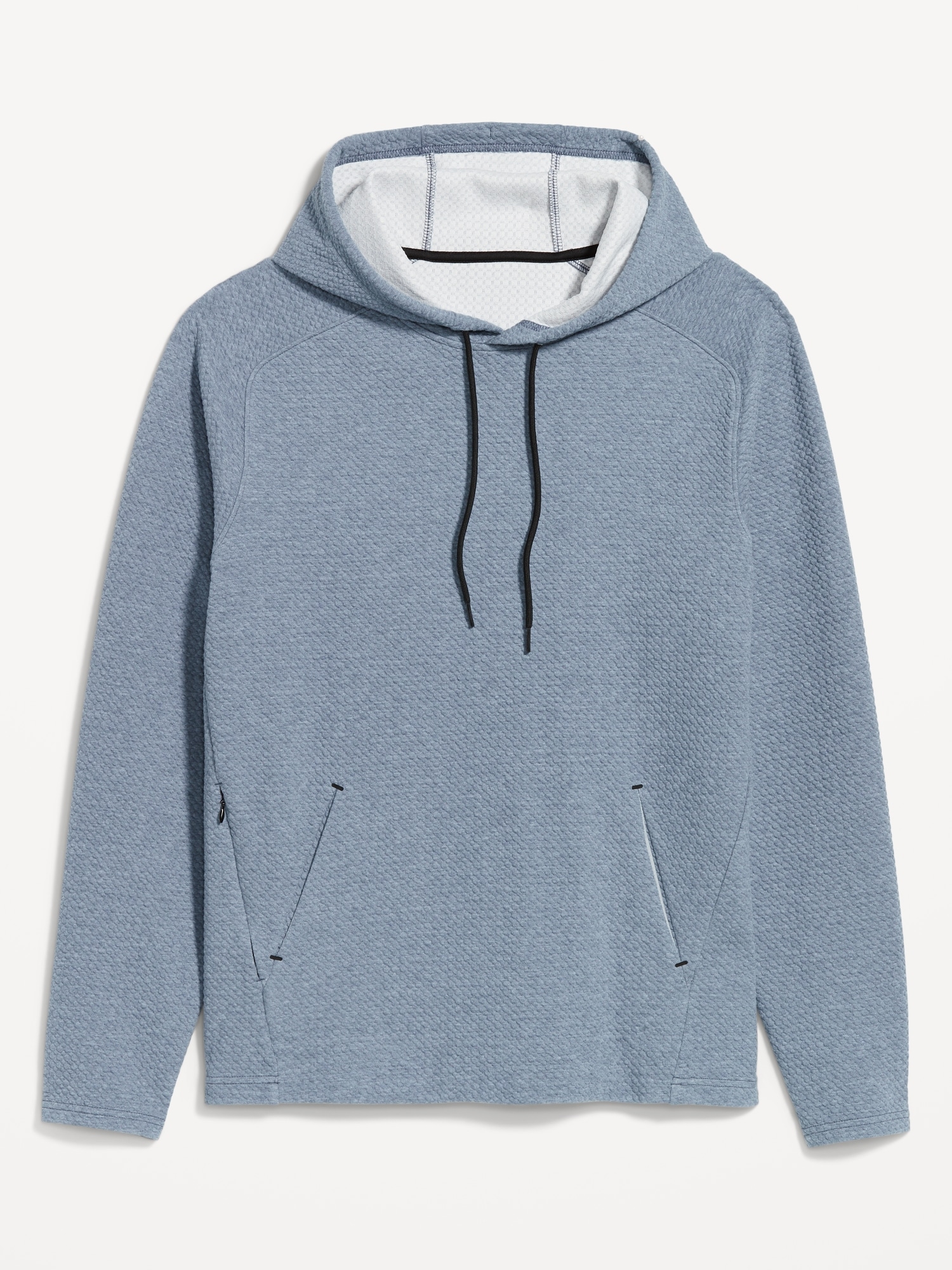 Dynamic Fleece Textured Hoodie: Featuring Dynamic Fleece. Soft, smooth fleece plus made-to-move stretch.crew neck, long sleeves, front pockets, hidden zip stash pocket, four-way stretch, pullover style, #811657