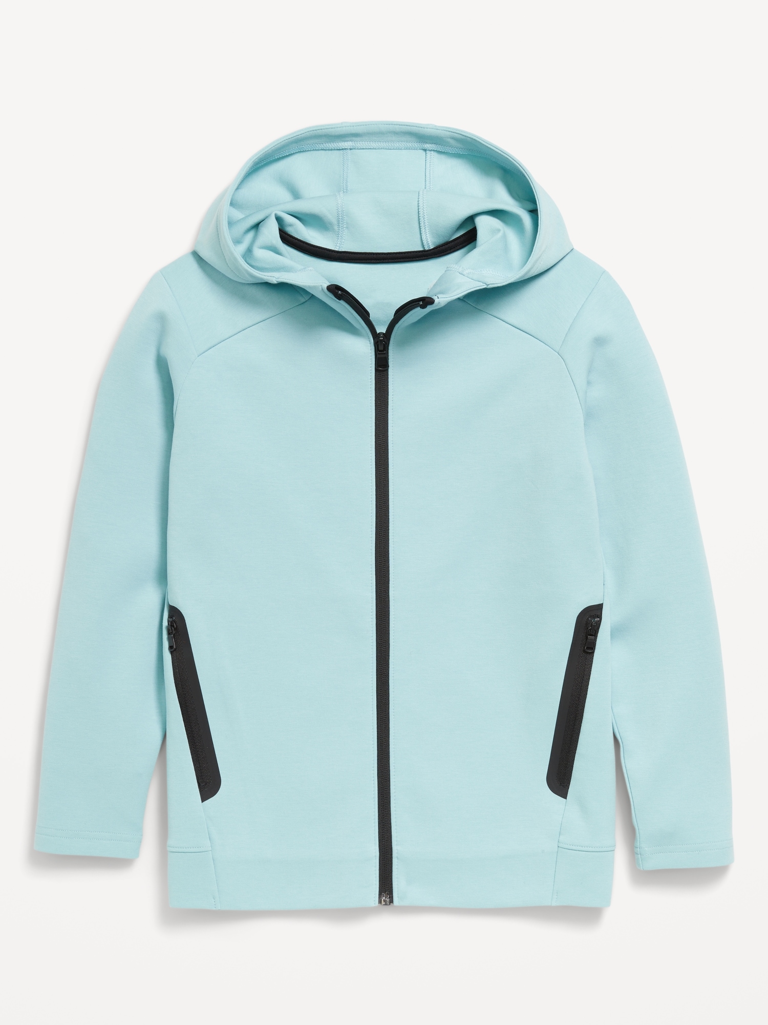 Dynamic Fleece Zip Hoodie for Boys: Made to keep up with all their shenanigans.built-in hood, long sleeves, vertical zippered chest pocket at left, light-reflecting trim, hand-warming pockets, banded hem, full-length zip front, online exclusive, #738695