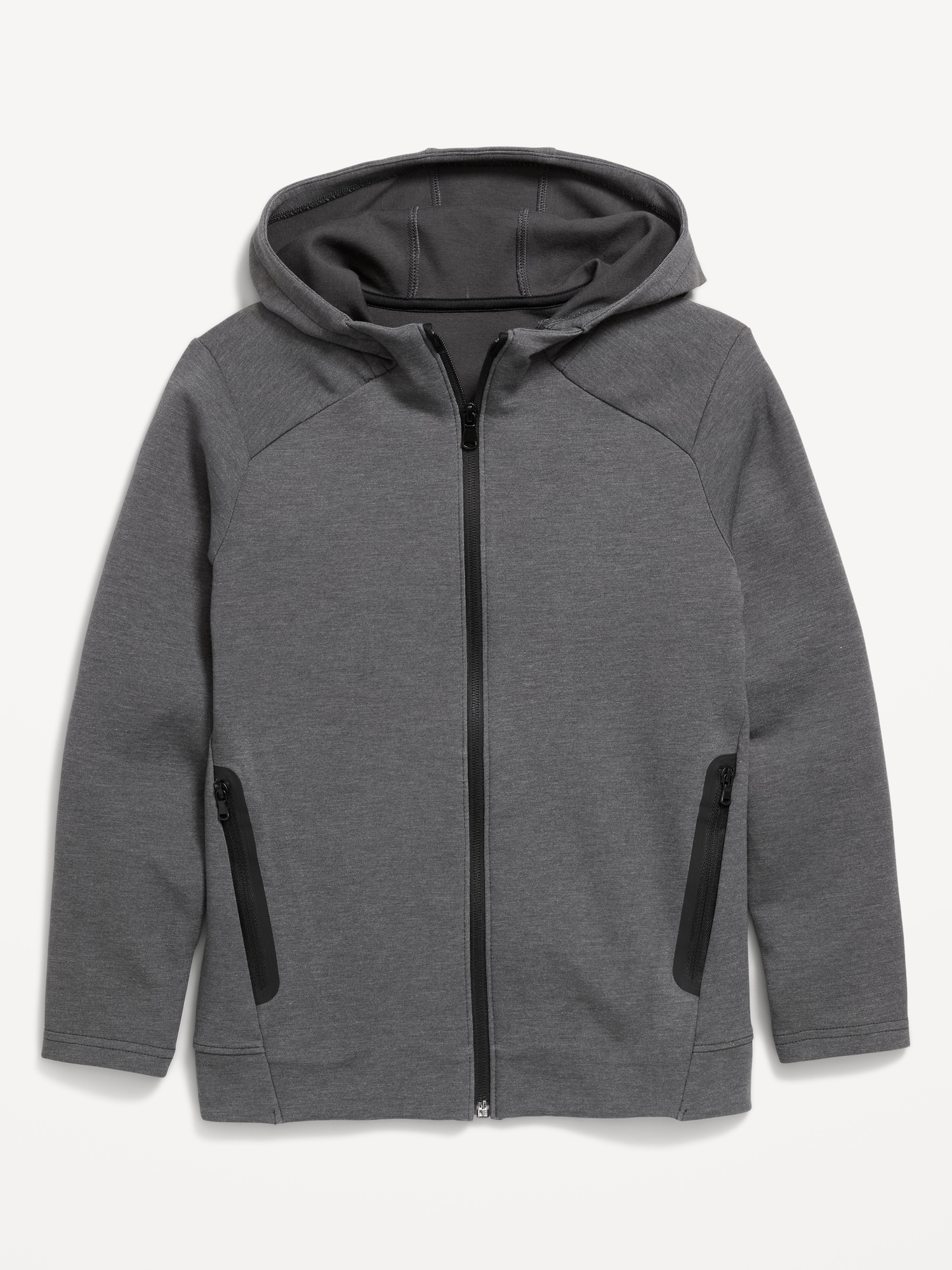 Dynamic Fleece Zip Hoodie for Boys: Made to keep up with all their shenanigans.built-in hood, long sleeves, vertical zippered chest pocket at left, light-reflecting trim, hand-warming pockets, banded hem, full-length zip front, online exclusive, #738695