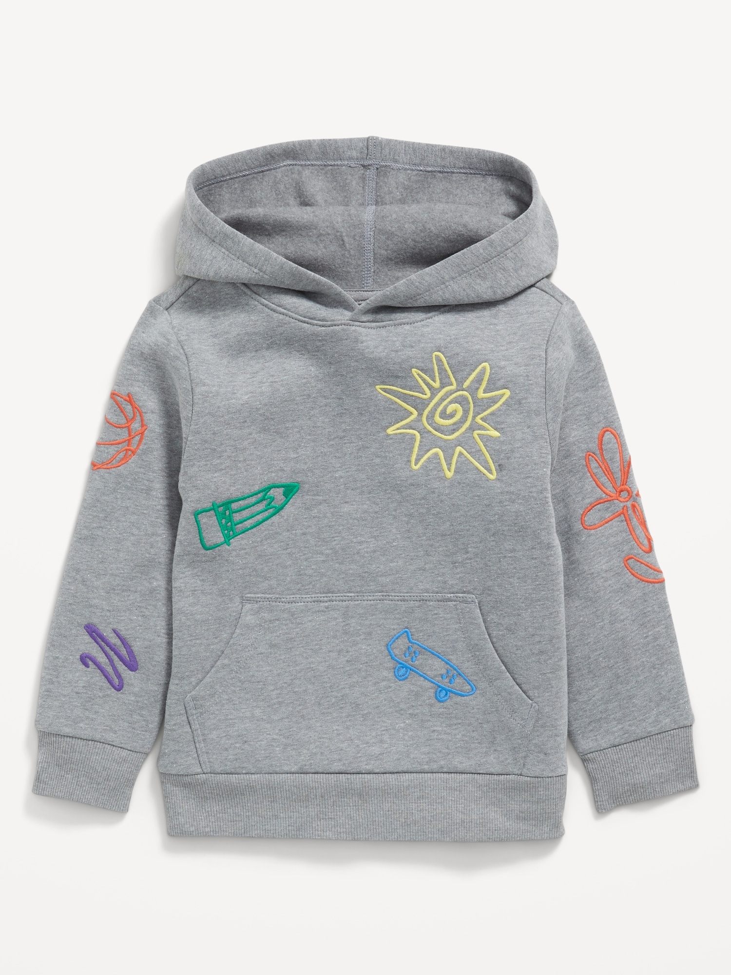 Embroidered Pullover Hoodie for Toddler Boys: built-in hood, long sleeves, kangaroo pocket, all-over embroidery, banded hem, #750654