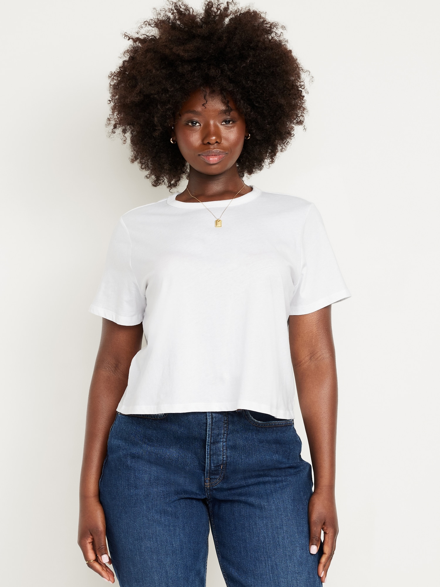 EveryWear Crop T-Shirt: Our EveryWear T-shirts are super-soft, with a comfortable, relaxed fit. Wear ’em with everything.rib-knit crew neck, short sleeves, #693049