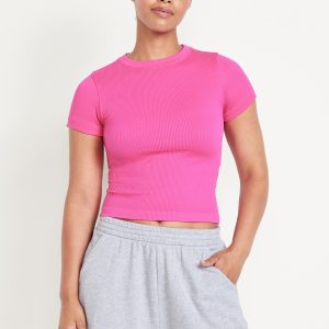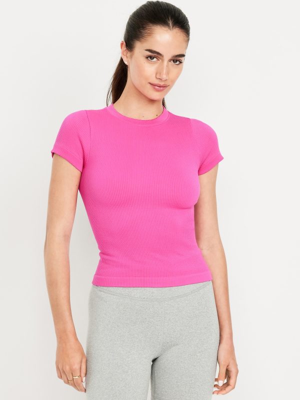 Exhale Seamless Fitted Rib T-Shirt: Ribbed nylon with incredible stretch and softness.crew neck, short sleeves, go-dry wicks moisture, #892256