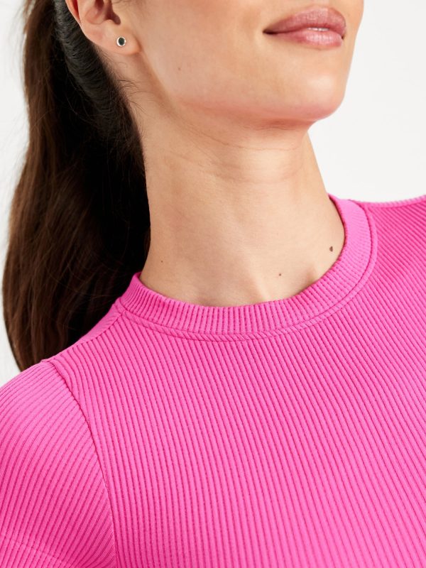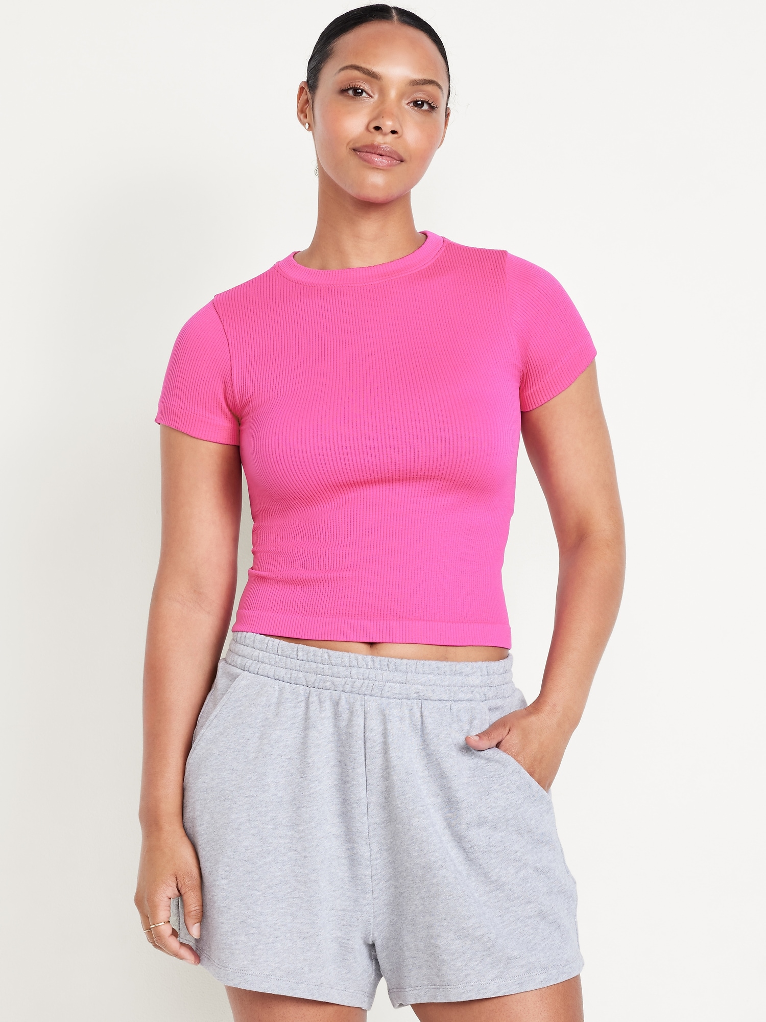 Exhale Seamless Fitted Rib T-Shirt: Ribbed nylon with incredible stretch and softness.crew neck, short sleeves, go-dry wicks moisture, #892256