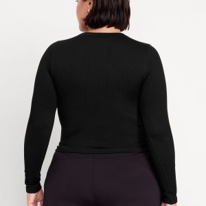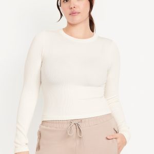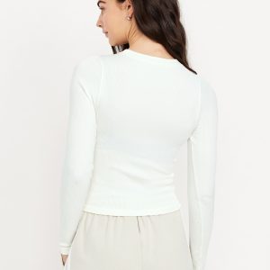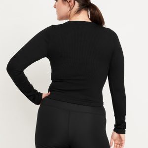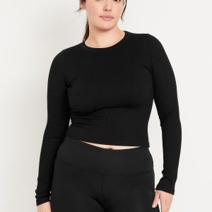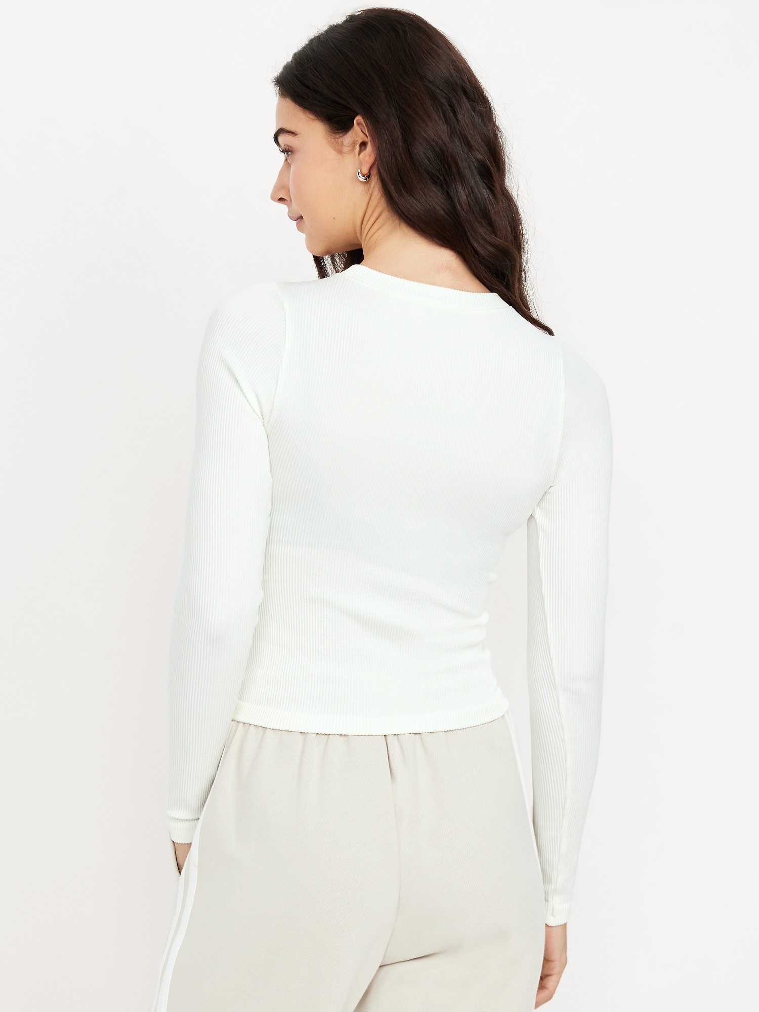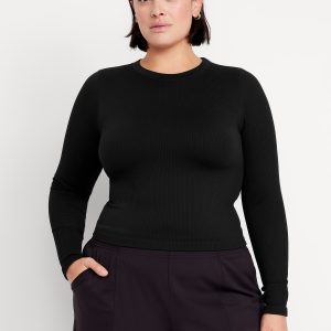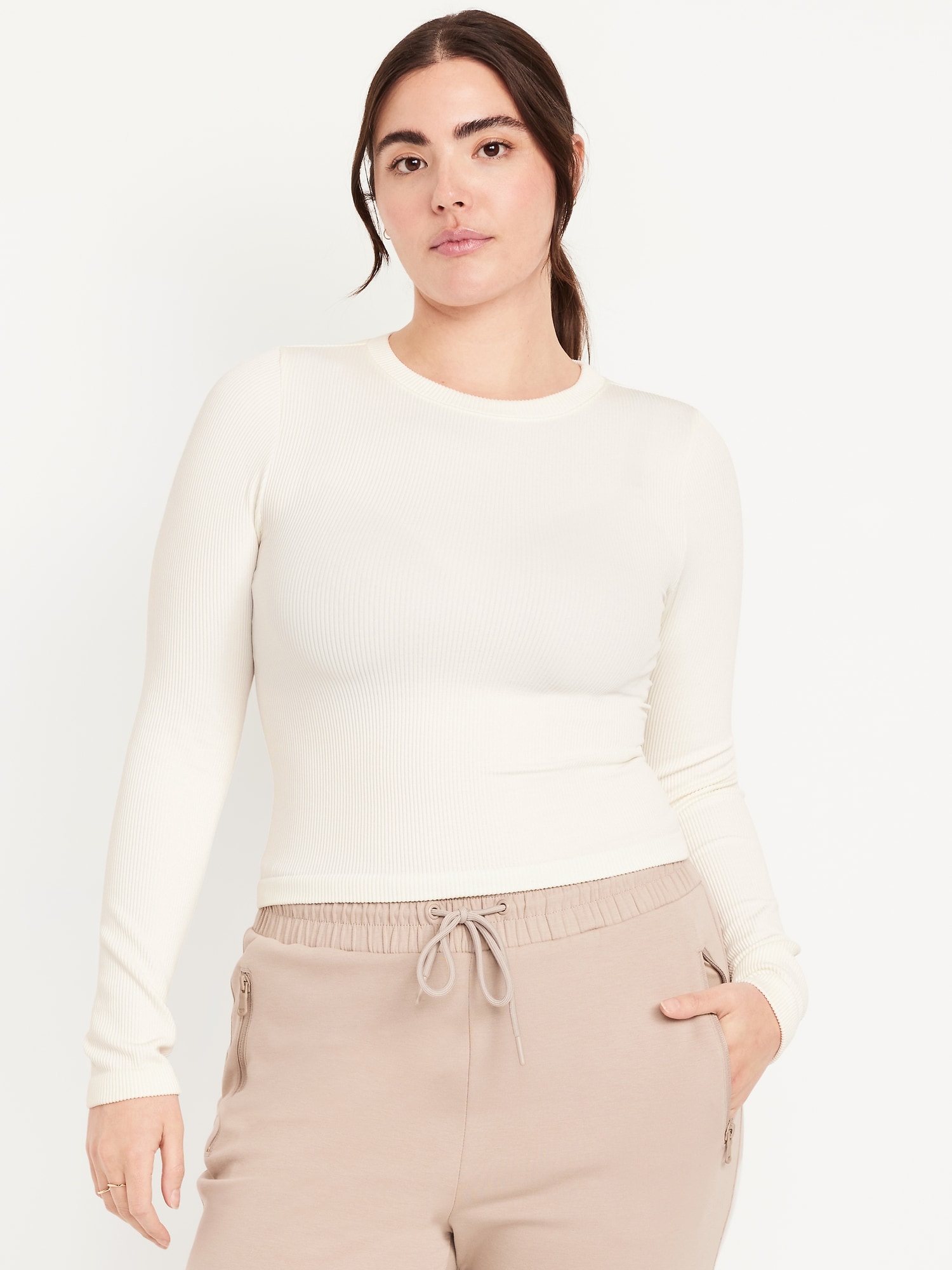 Exhale Seamless Fitted Rib T-Shirt: Ribbed nylon with incredible stretch and softness.crew neck, long sleeves, go-dry wicks moisture, #569705