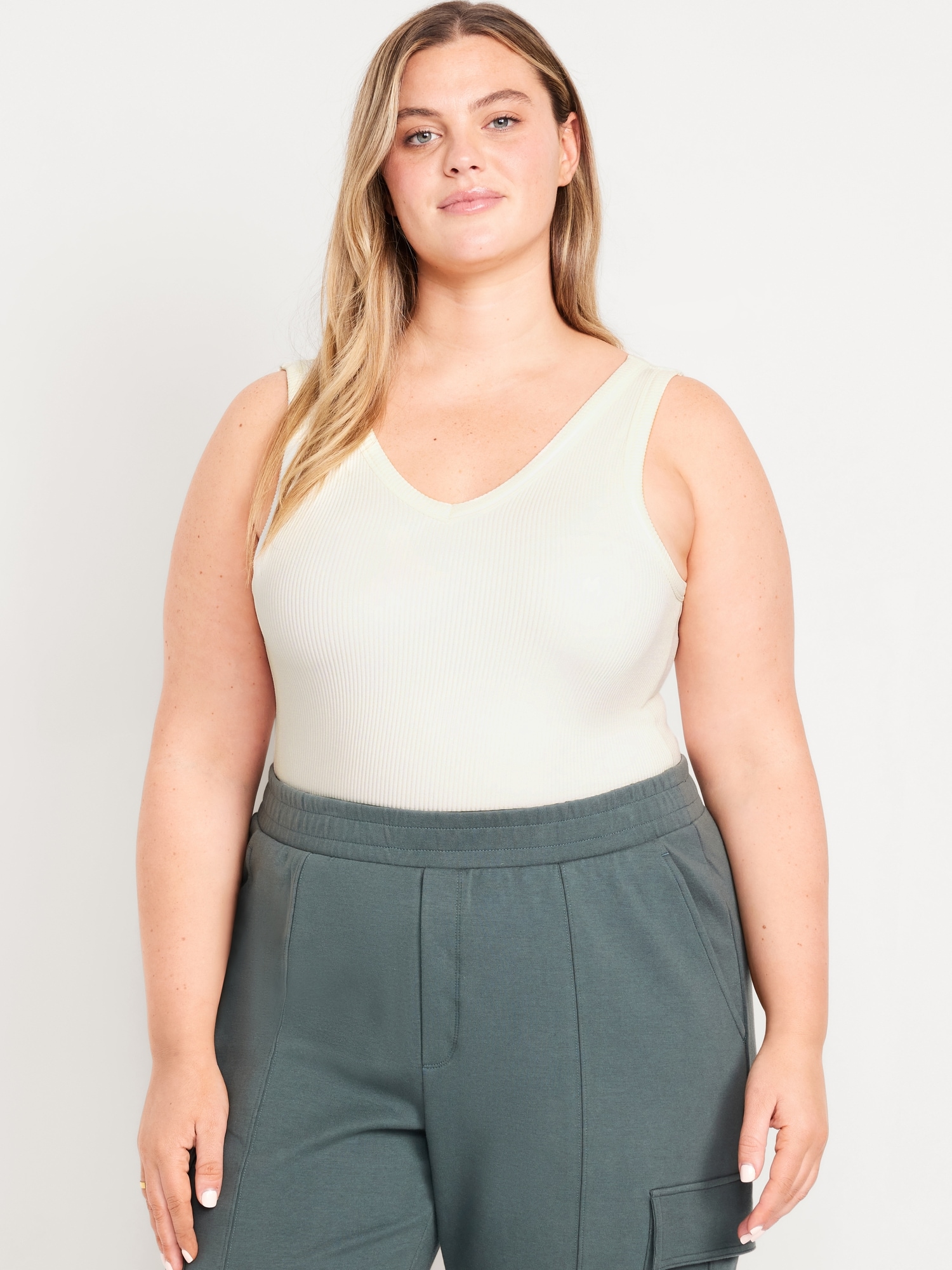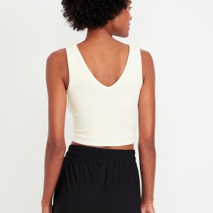 Exhale Seamless V-Neck Rib Tank: Ribbed nylon with incredible stretch and softness.v-neck, wide straps, go-dry wicks moisture, #663772