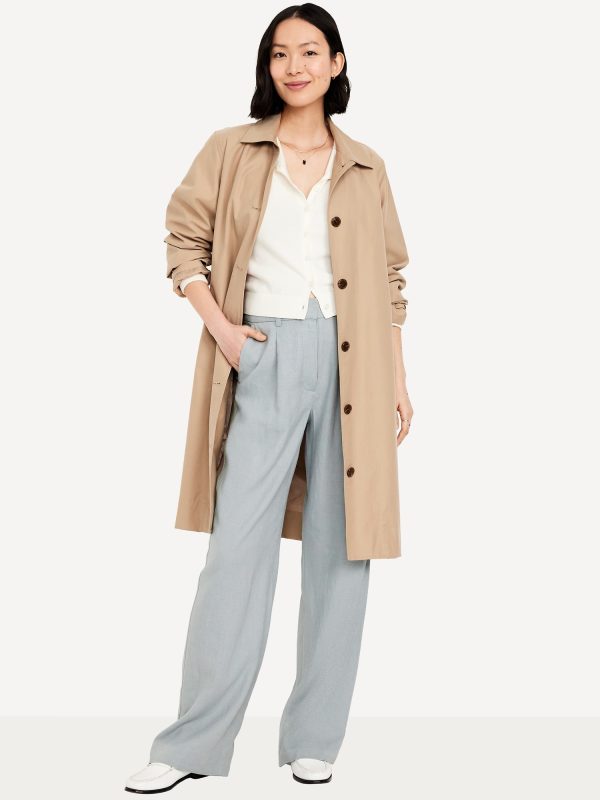 Extra High-Waisted Linen-Blend Taylor Wide-Leg Trouser Pants: Tailored pleats. Loose fit. Don’t do 9-5 (or 5-9) without them.partially-elasticized waistband, hook-and-bar closure, hip pockets, functional back welt pocket, striped print, wide leg, #683376