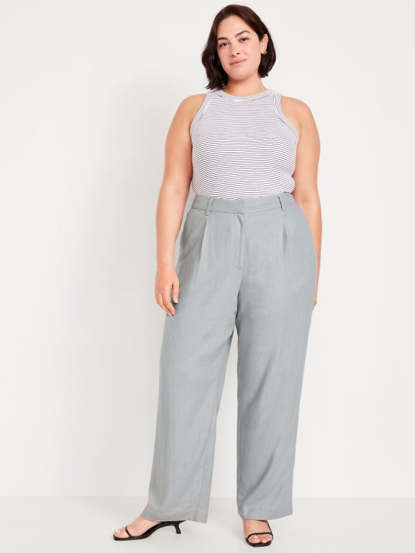Extra High-Waisted Linen-Blend Taylor Wide-Leg Trouser Pants: Tailored pleats. Loose fit. Don’t do 9-5 (or 5-9) without them.partially-elasticized waistband, hook-and-bar closure, hip pockets, functional back welt pocket, striped print, wide leg, #683376