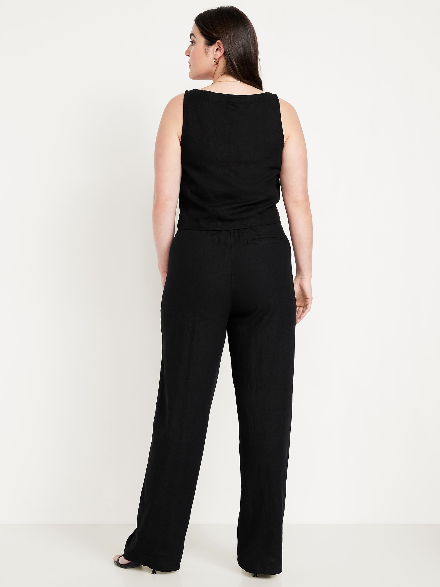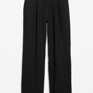 Extra High-Waisted Linen-Blend Taylor Wide-Leg Trouser Pants: Tailored pleats. Loose fit. Don’t do 9-5 (or 5-9) without them.partially-elasticized waistband, hook-and-bar closure, hip pockets, functional back welt pocket, striped print, wide leg, #683376