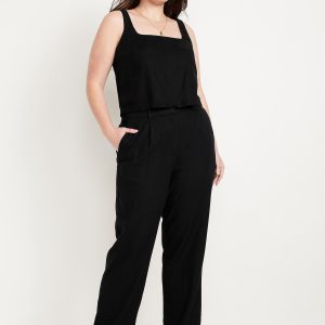 Extra High-Waisted Linen-Blend Taylor Wide-Leg Trouser Pants: Tailored pleats. Loose fit. Don’t do 9-5 (or 5-9) without them.partially-elasticized waistband, hook-and-bar closure, hip pockets, functional back welt pocket, striped print, wide leg, #683376