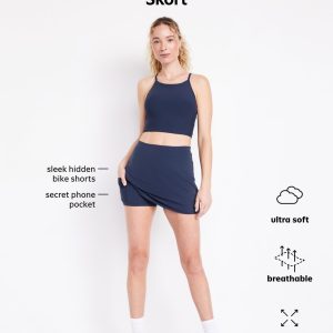 Extra High-Waisted StudioSmooth Skort: Featuring StudioSmooth. Buttery soft and breathable, with a barely-there feel.extra high waist, built-in bike shorts with right pocket for phone, go-dry wicks moisture, breathable, #748686